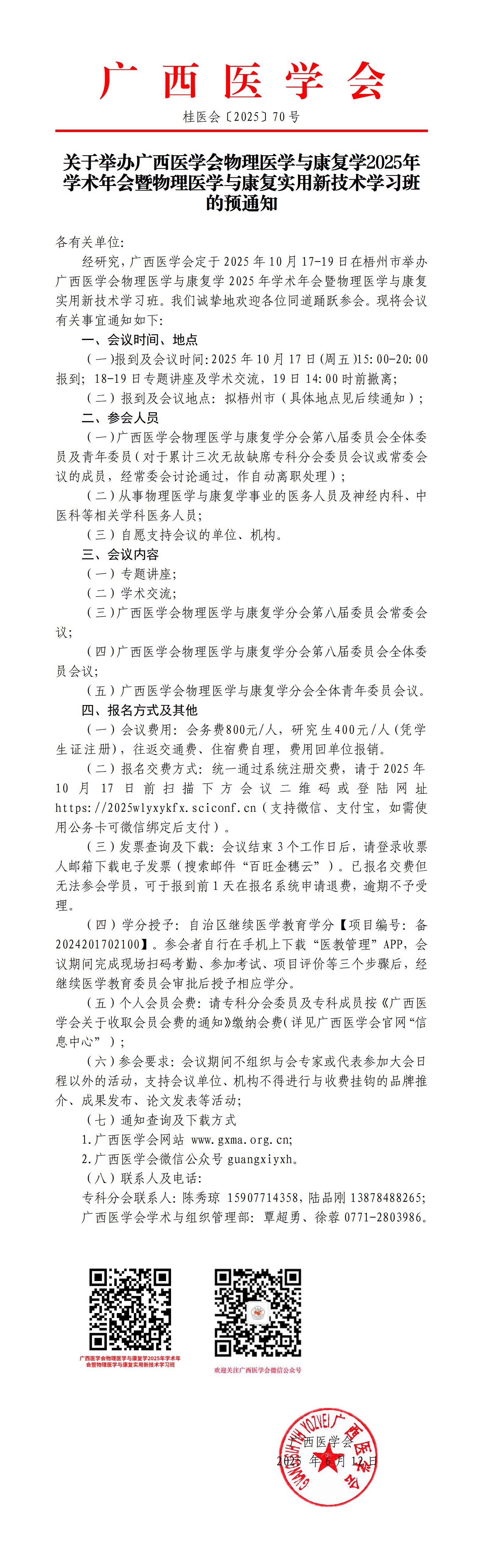 关于举办广西医学会物理医学与康复学2025年学术年会暨物理医学与康复实用新技术学习班的预通知