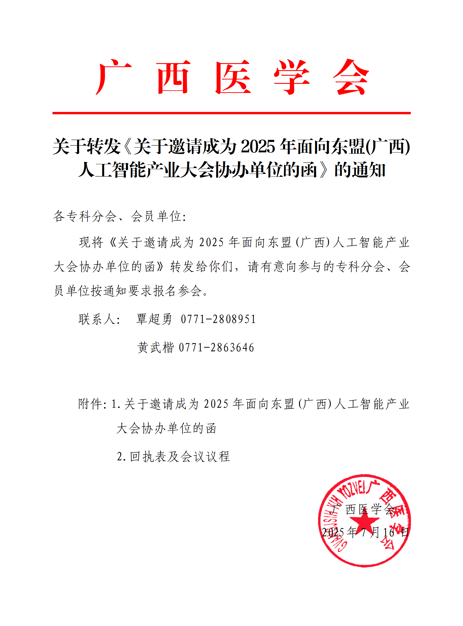 关于转发《关于邀请成为2025年面向东盟(广西)人工智能产业大会协办单位的函》的通知