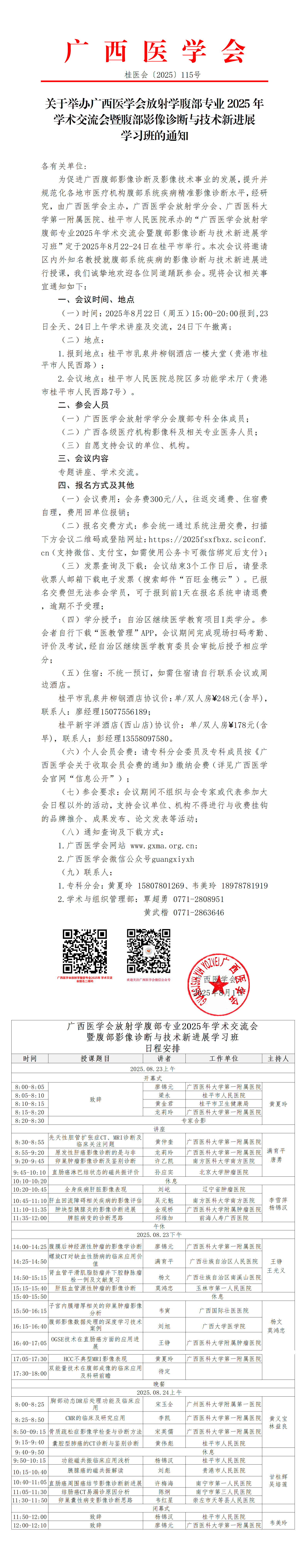关于举办广西医学会放射学腹部专业2025年学术交流会暨腹部影像诊断与技术新进展学习班的通知