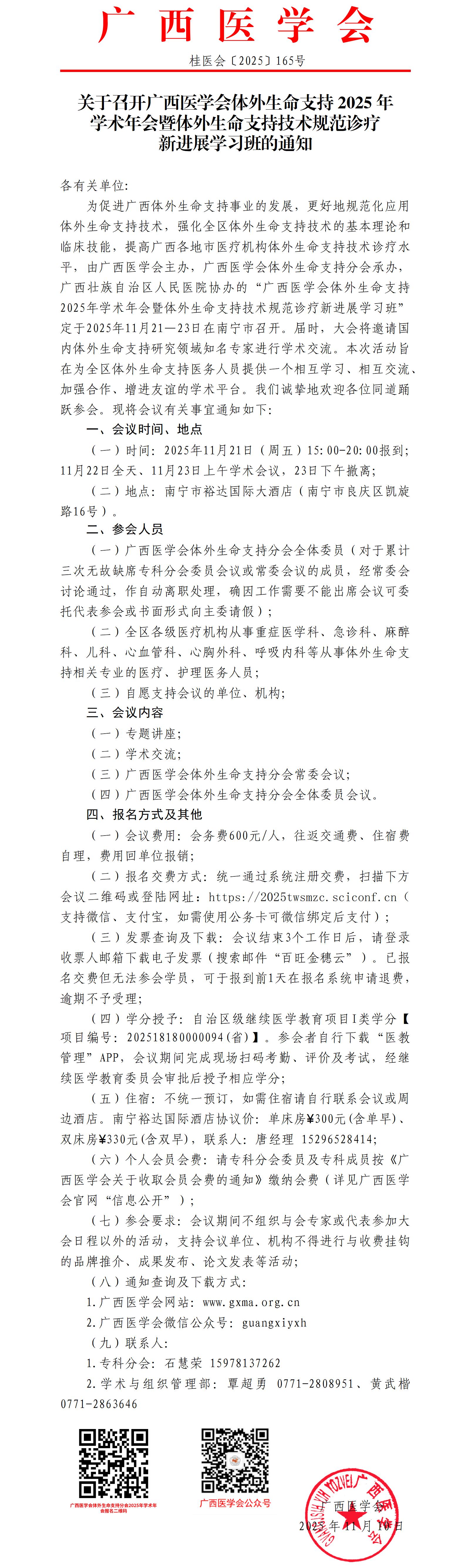 关于召开广西医学会体外生命支持2025年学术年会暨体外生命支持技术规范诊疗新进展学习班的通知