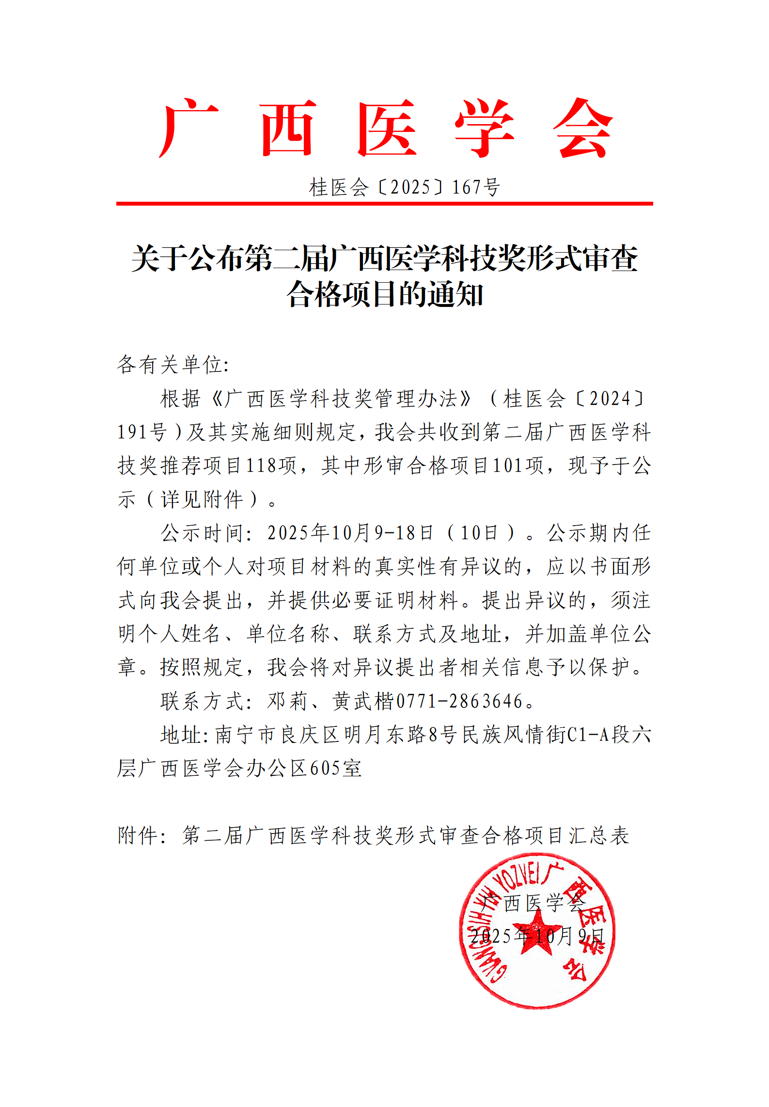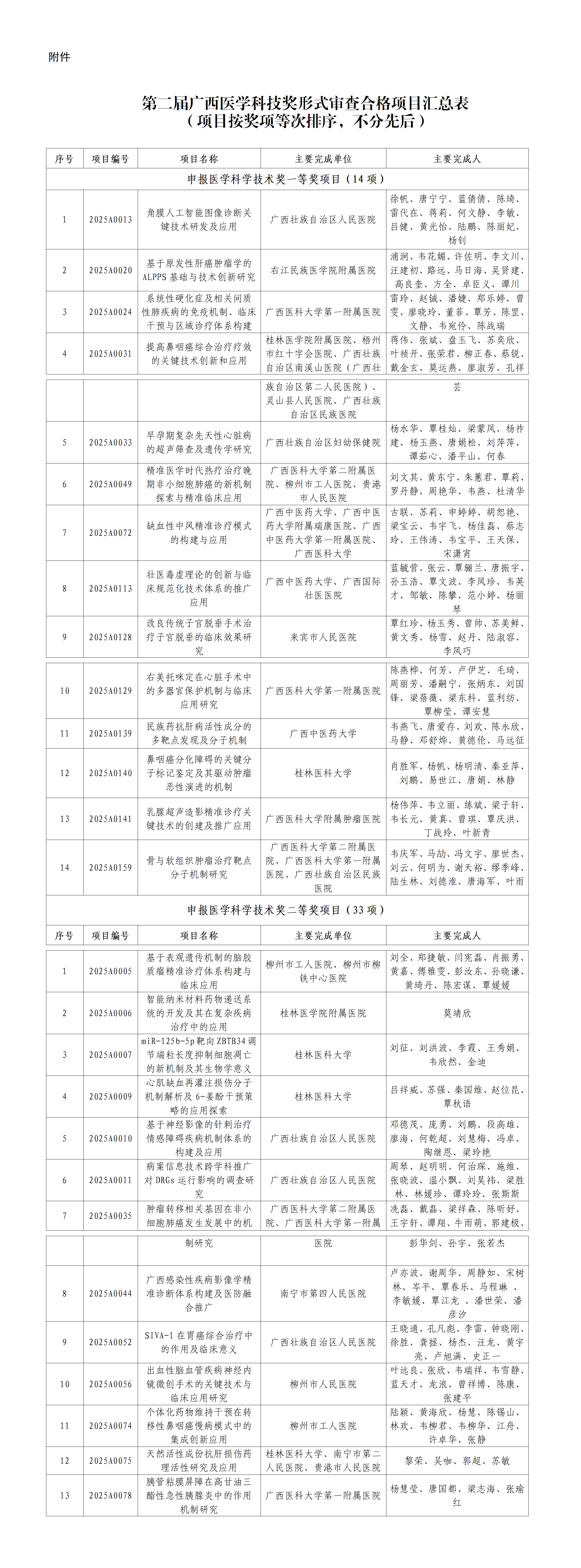关于公布第二届广西医学科技奖形式审查合格项目的通知