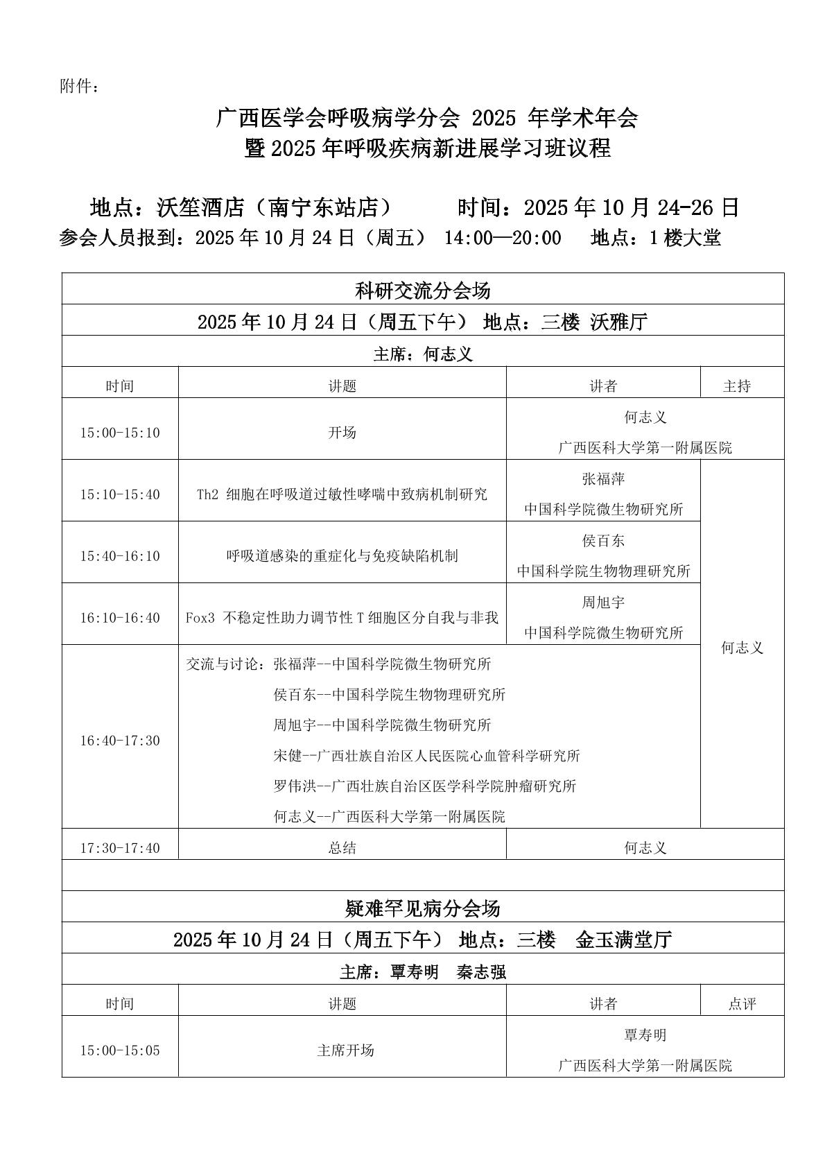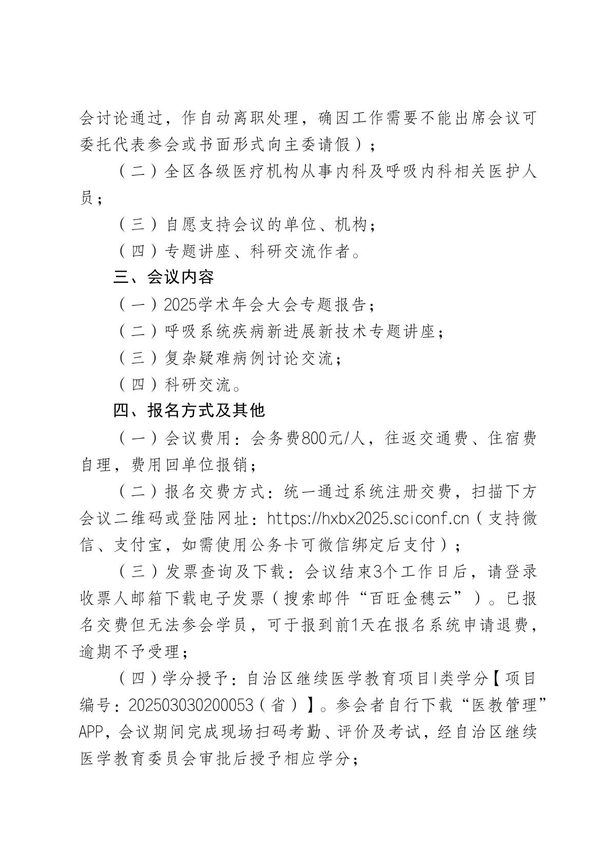 关于举办广西医学会呼吸病学2025年学术年会暨呼吸病新进展学习班的通知