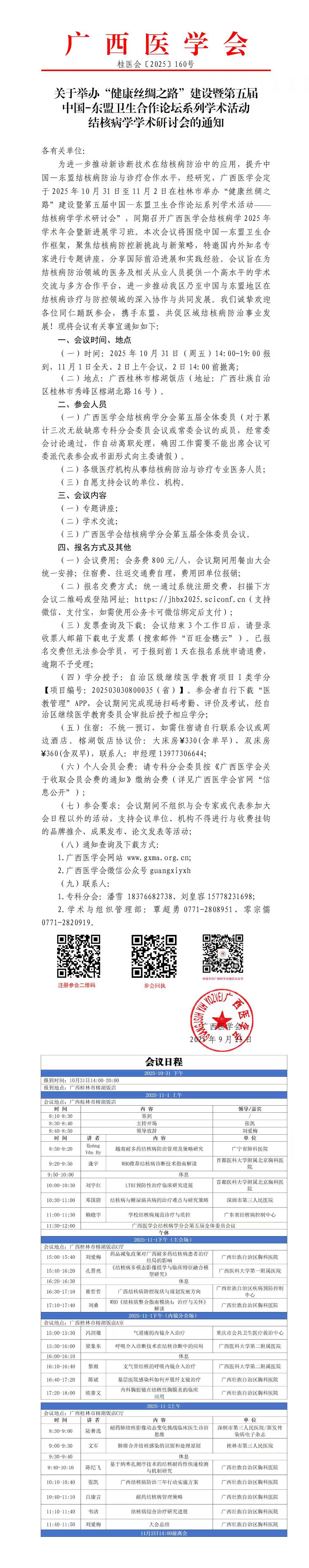 关于举办“健康丝绸之路”建设暨第五届中国-东盟卫生合作论坛系列学术活动结核病学学术研讨会的通知