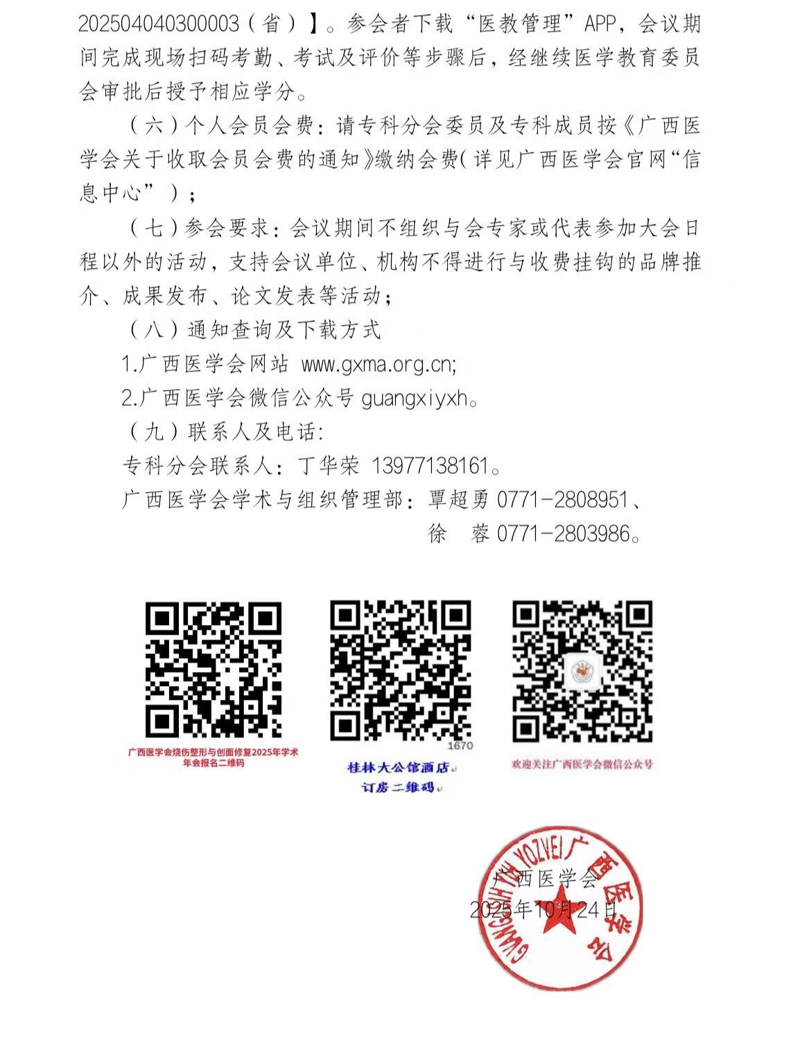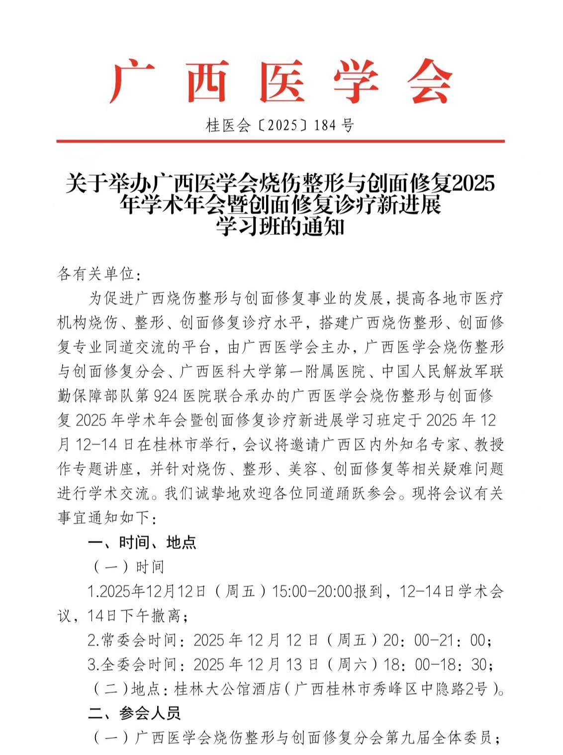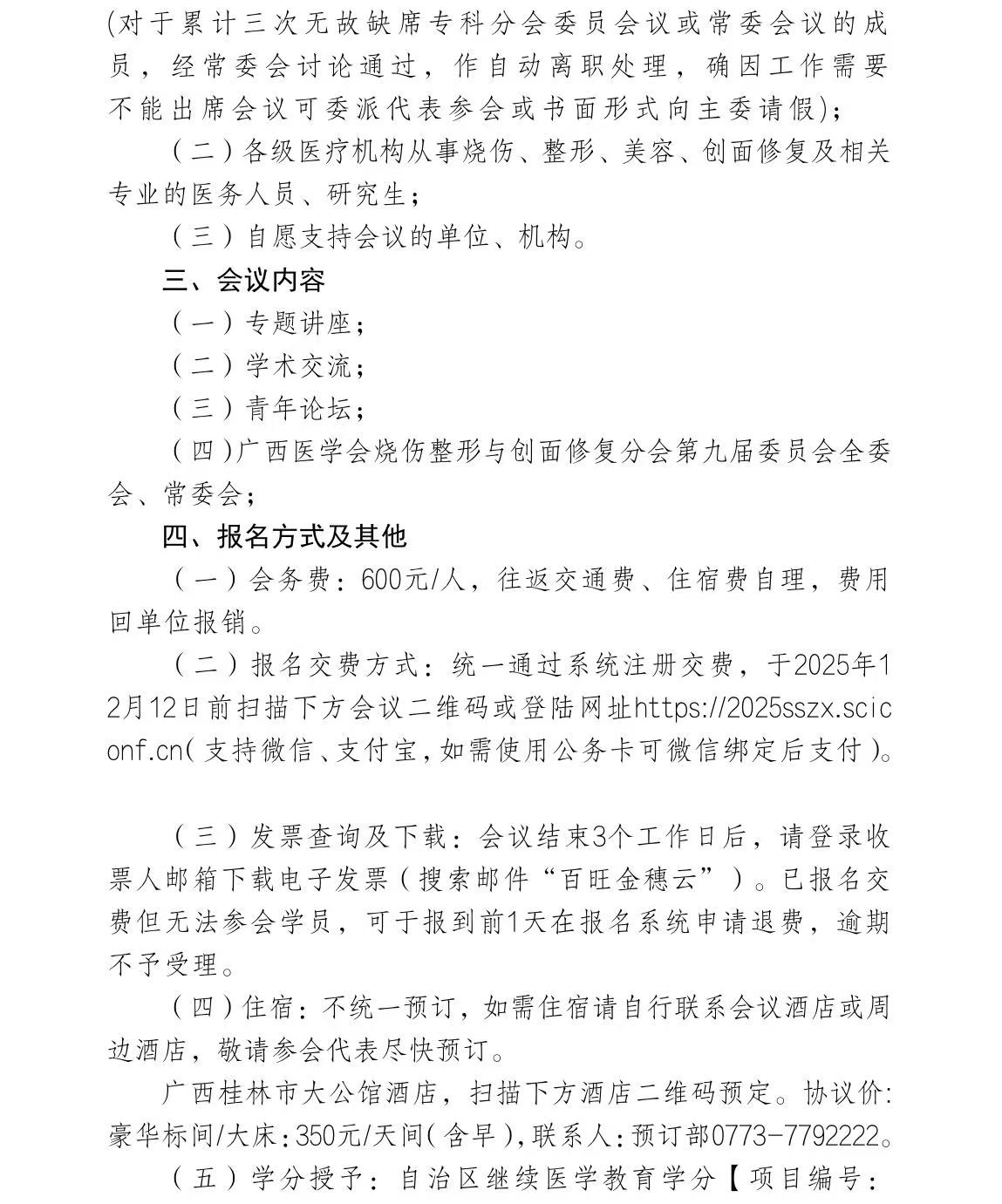 关于举办广西医学会烧伤整形与创面修复2025年学术年会暨创面修复诊疗新进展学习班的通知