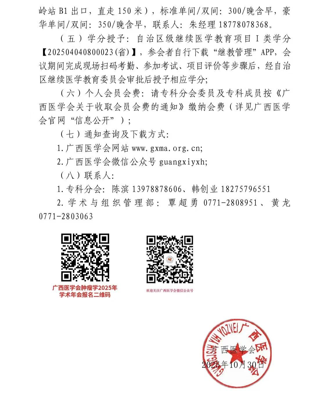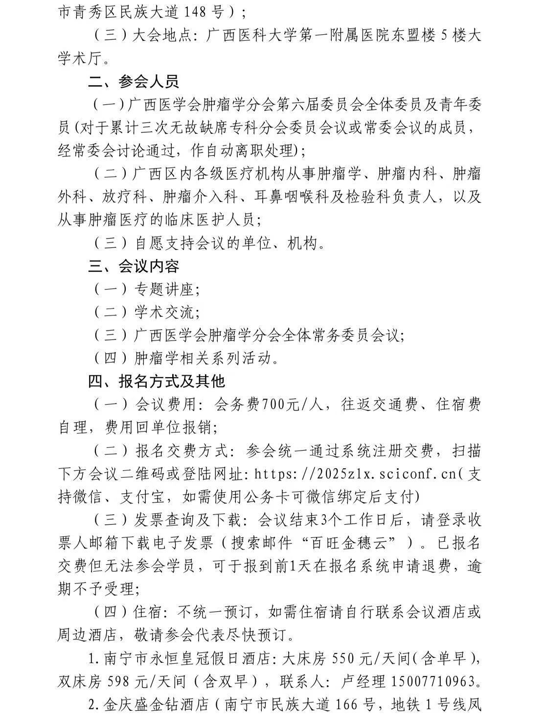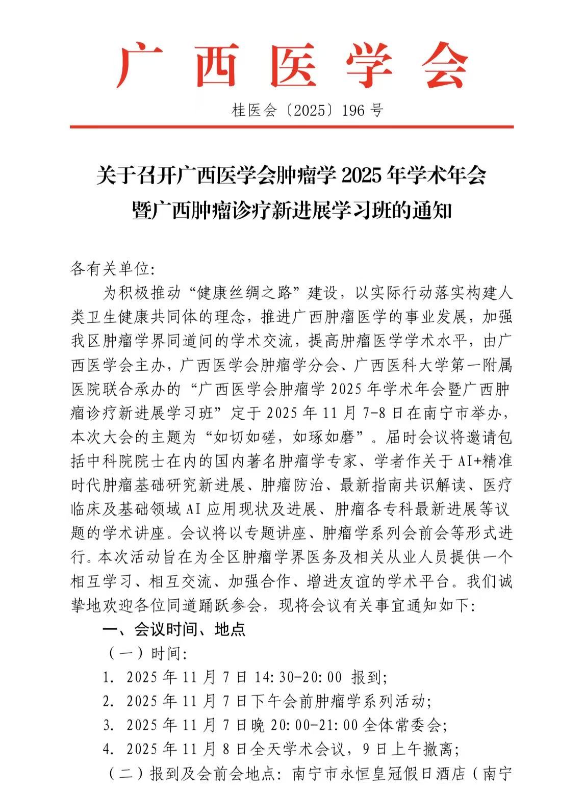 关于召开广西医学会肿瘤学 2025 年学术年会暨广西肿瘤诊疗新进展学习班的通知