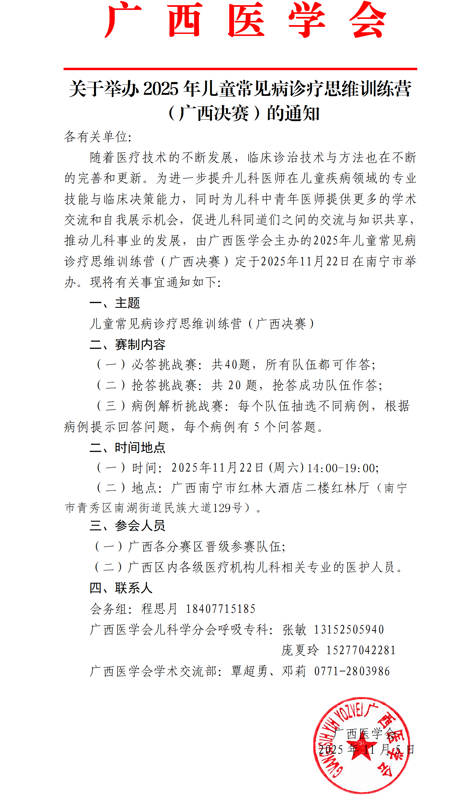 关于举办2025年儿童常见病诊疗思维训练营(广西决赛)的通知