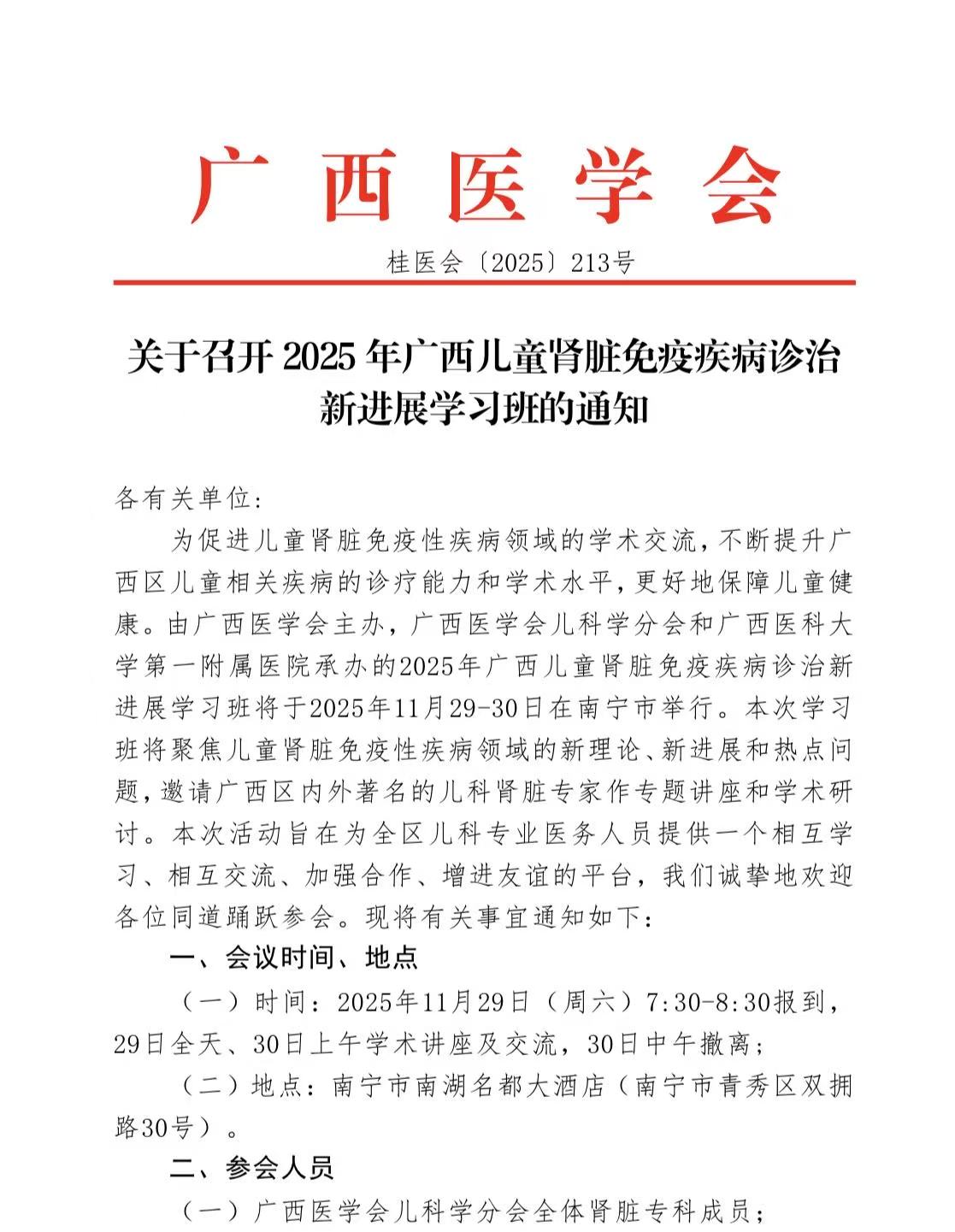 关于召开2025年广西儿童肾脏免疫疾病诊治新进展学习班的通知