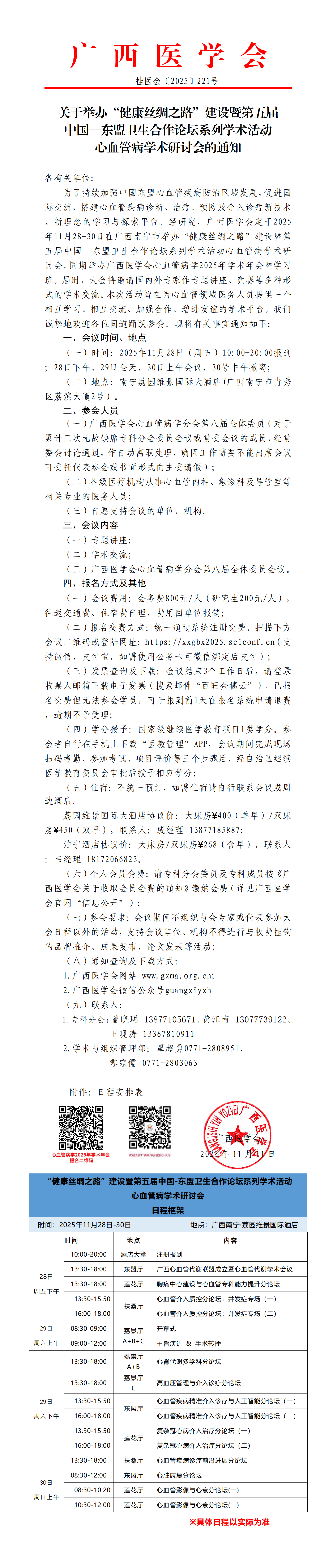 关于举办“健康丝绸之路”建设暨第五届中国—东盟卫生合作论坛系列学术活动心血管病学术研讨会的通知