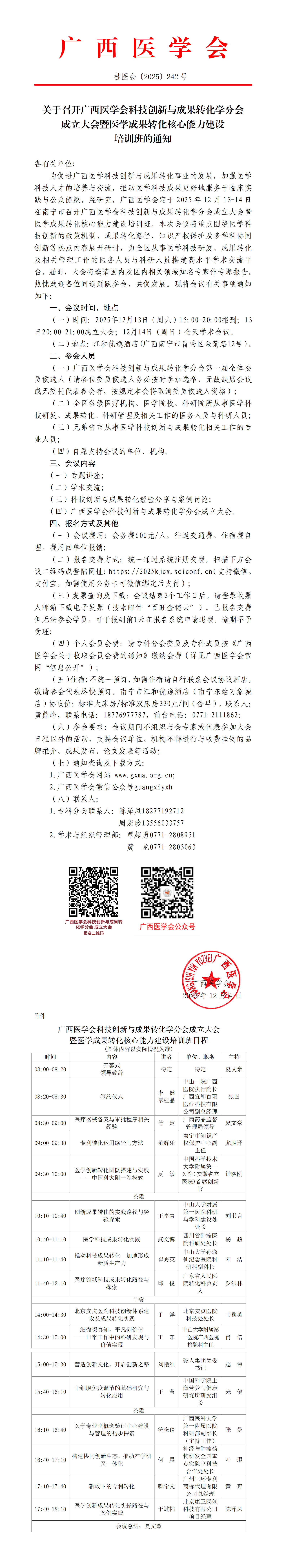 关于召开广西医学会科技创新与成果转化学分会成立大会暨医学成果转化核心能力建设培训班的通知