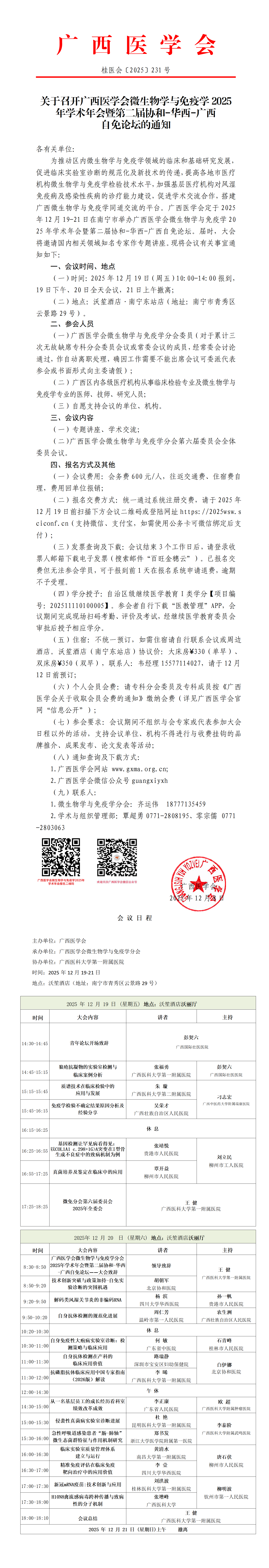 关于召开广西医学会微生物学与免疫学2025年学术年会暨第二届协和-华西-广西自免论坛的通知