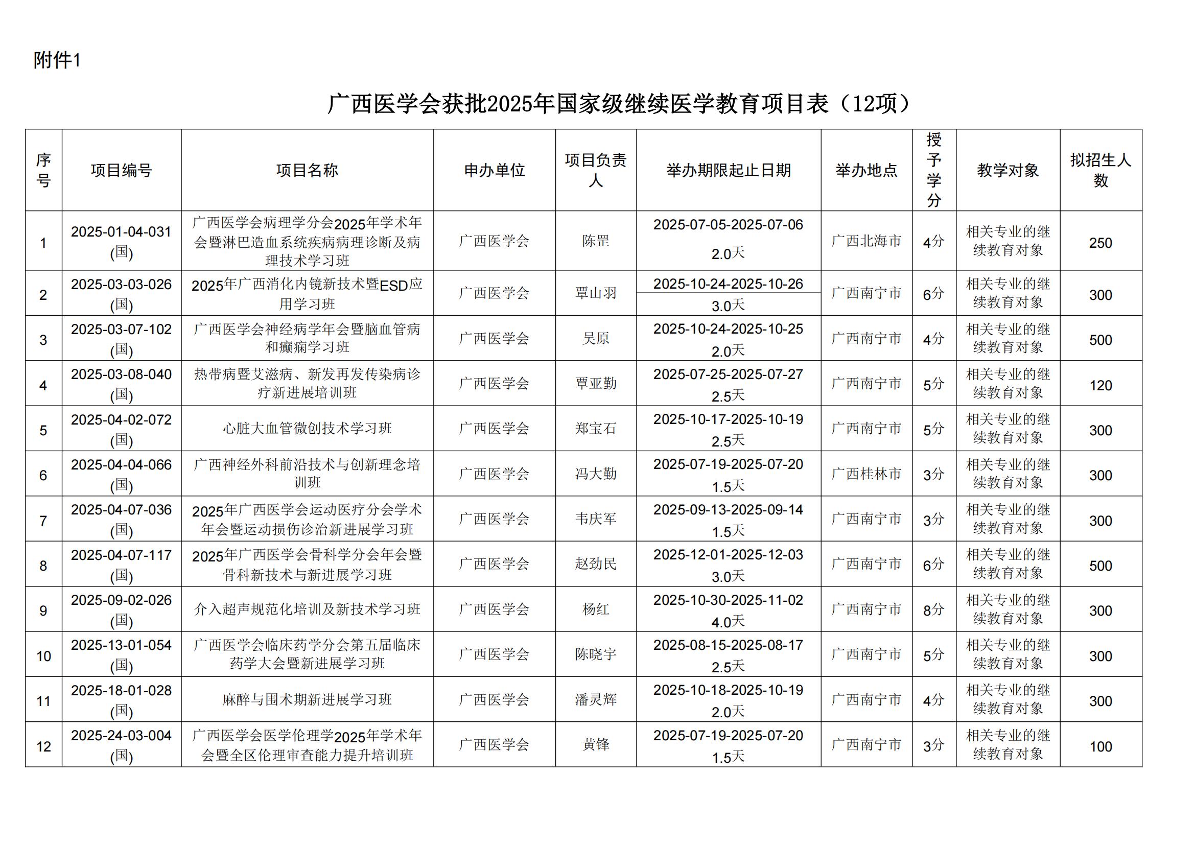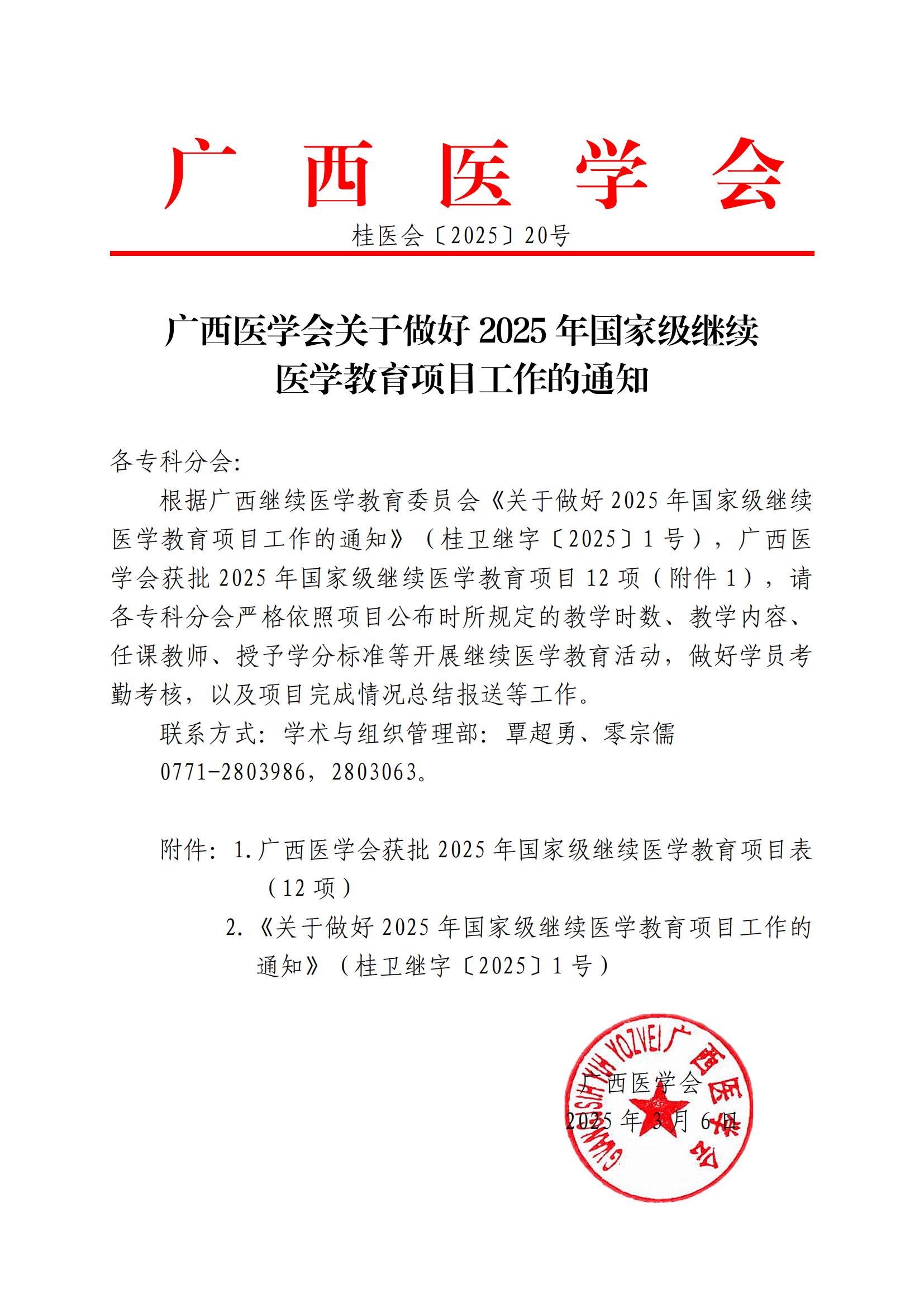 广西医学会关于做好 2025 年国家级继续医学教育项目工作的通知