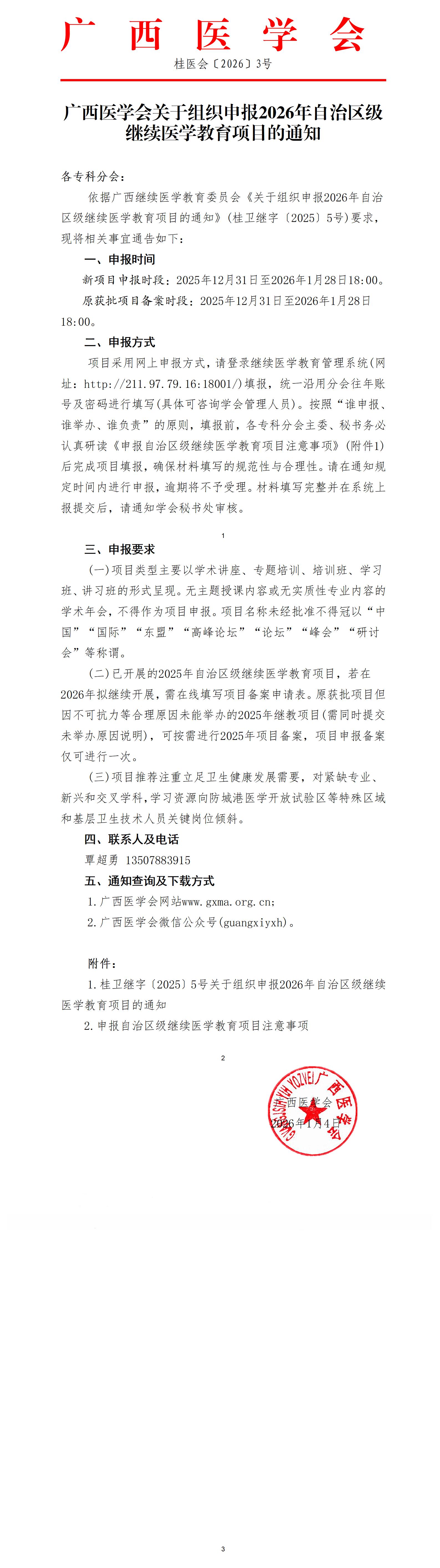 广西医学会关于组织申报2026年自治区级继续医学教育项目的通知
