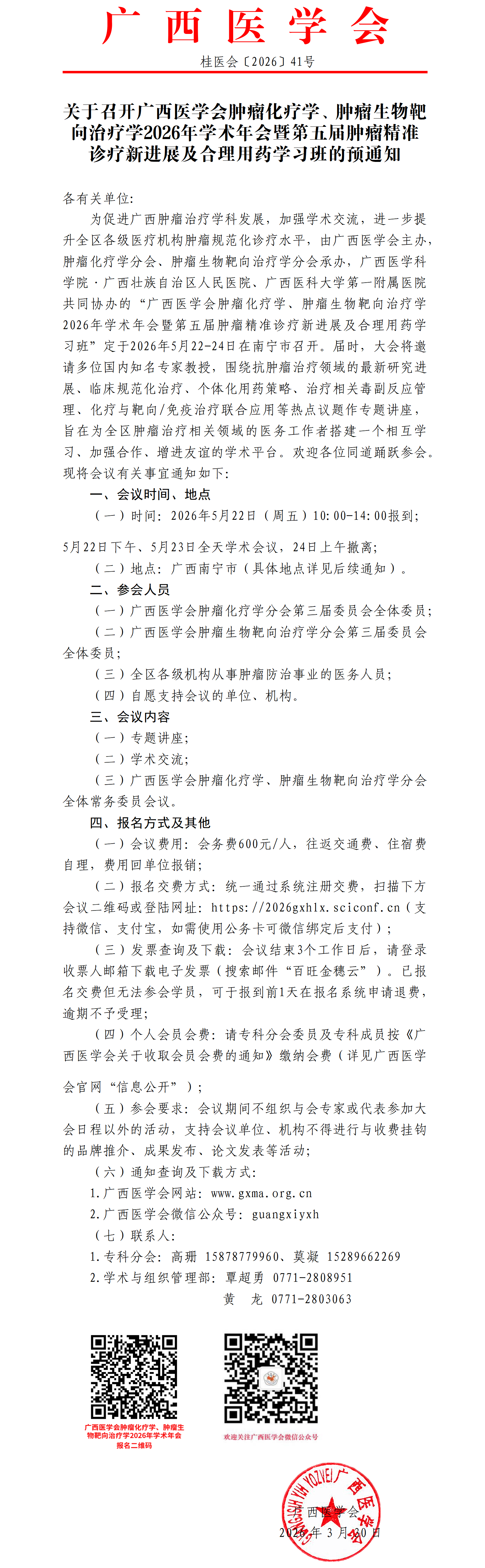 关于召开广西医学会肿瘤化疗学、肿瘤生物靶向治疗学2026年学术年会暨第五届肿瘤精准诊疗新进展及合理用药学习班的预通知