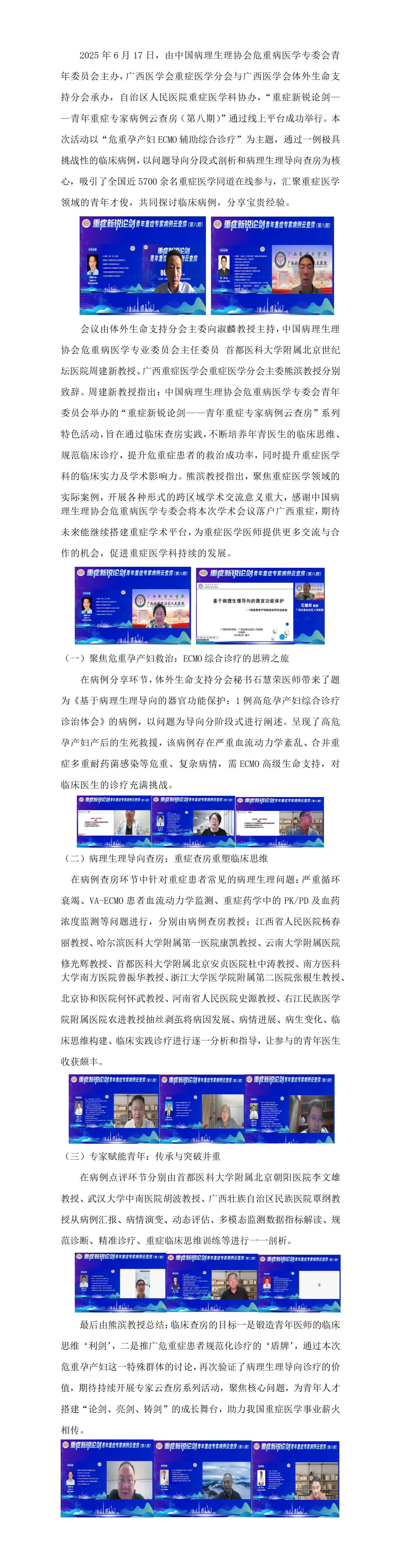 广西医学会重症医学分会、医学会体外生命支持分会联合承办 “重症新锐论剑——全国青年重症专家病例云查房(第八期)”学术活动