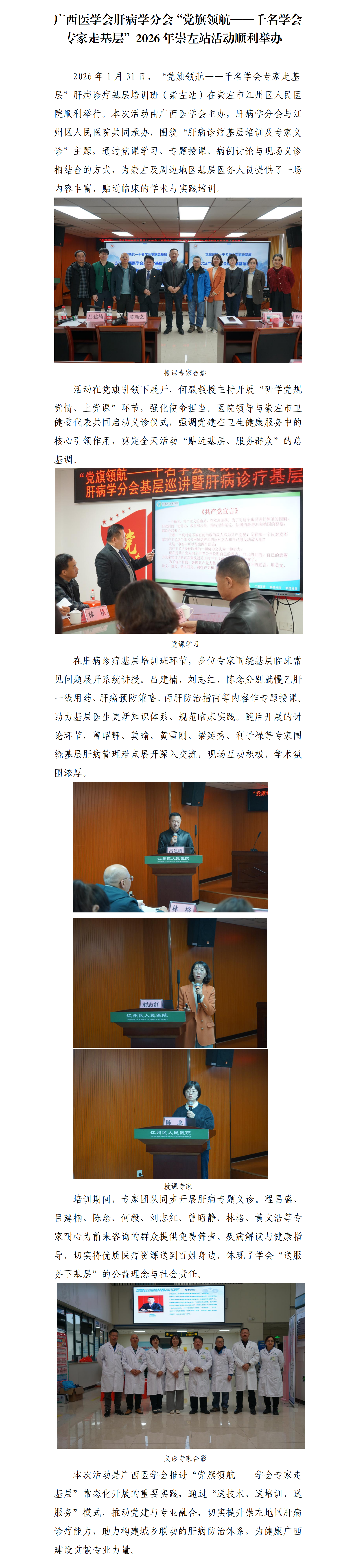 广西医学会肝病学分会“党旗领航——千名学会专家走基层”2026年崇左站活动顺利举办