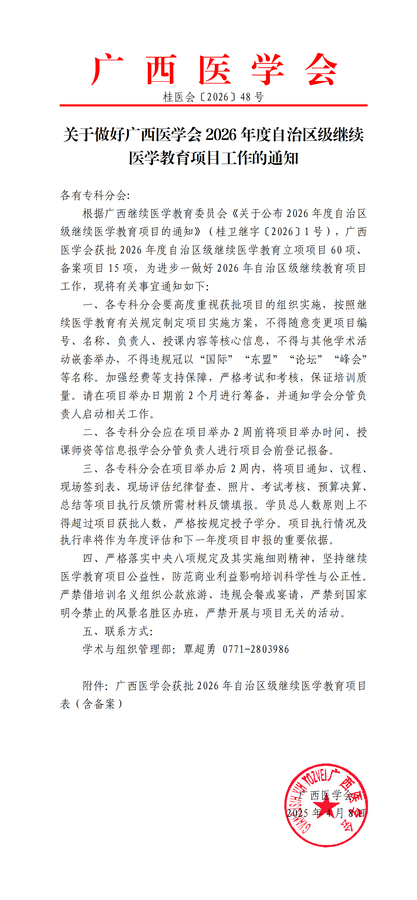 关于做好广西医学会2026年度自治区级继续医学教育项目工作的通知