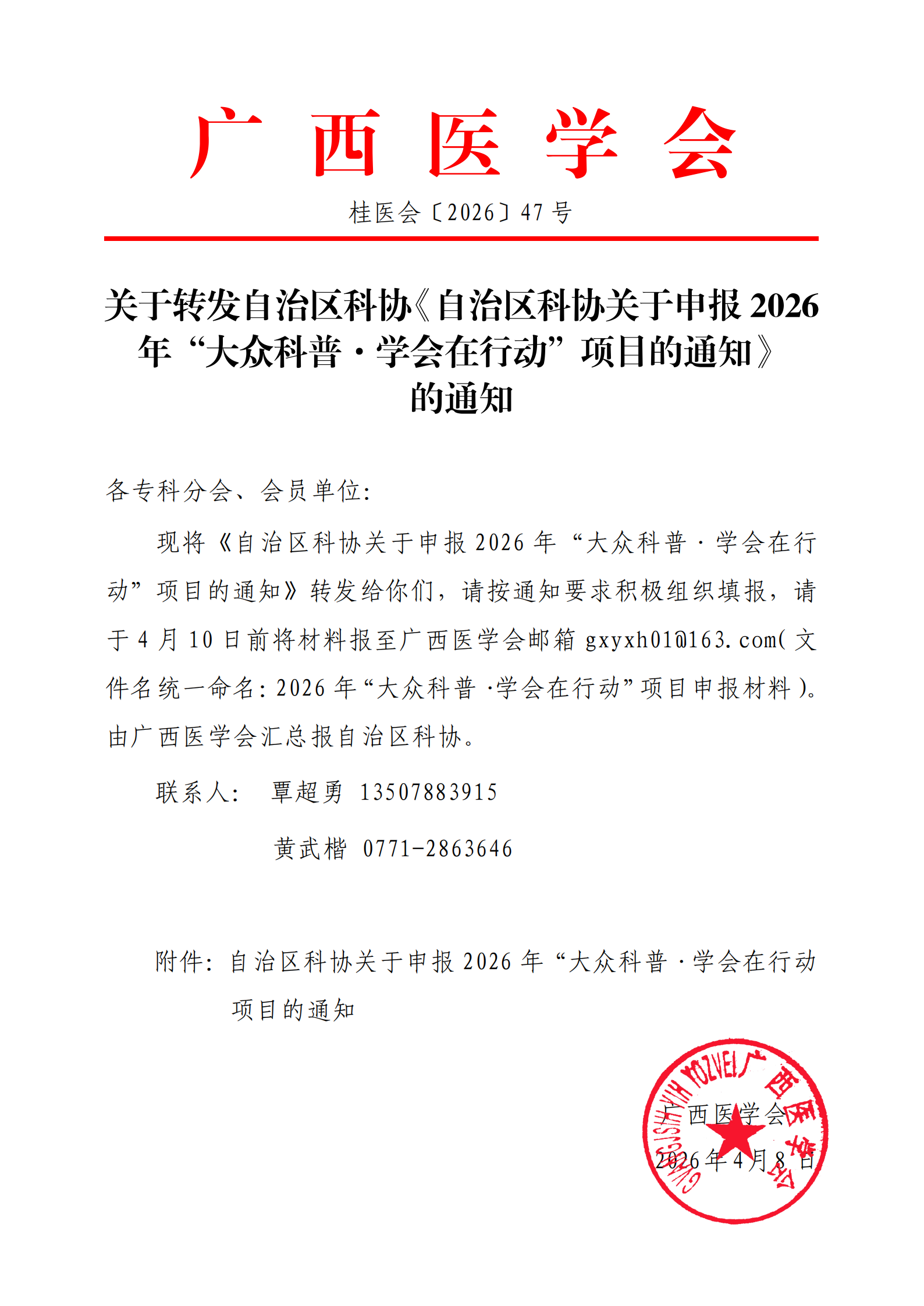 关于转发自治区科协《自治区科协关于申报2026年“大众科普·学会在行动”项目的通知》的通知