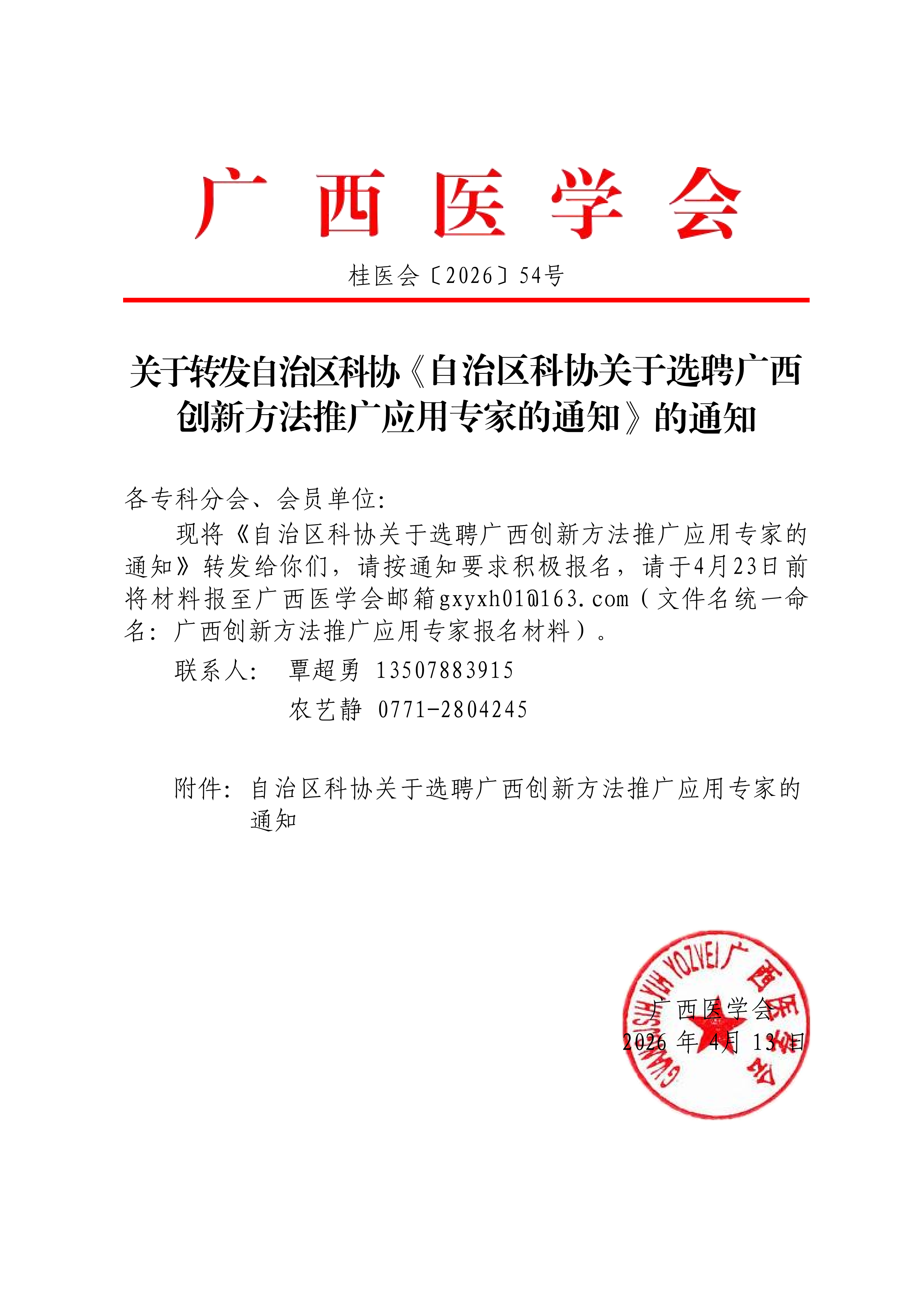 关于转发自治区科协《自治区科协关于选聘广西创新方法推广应用专家的通知》的通知