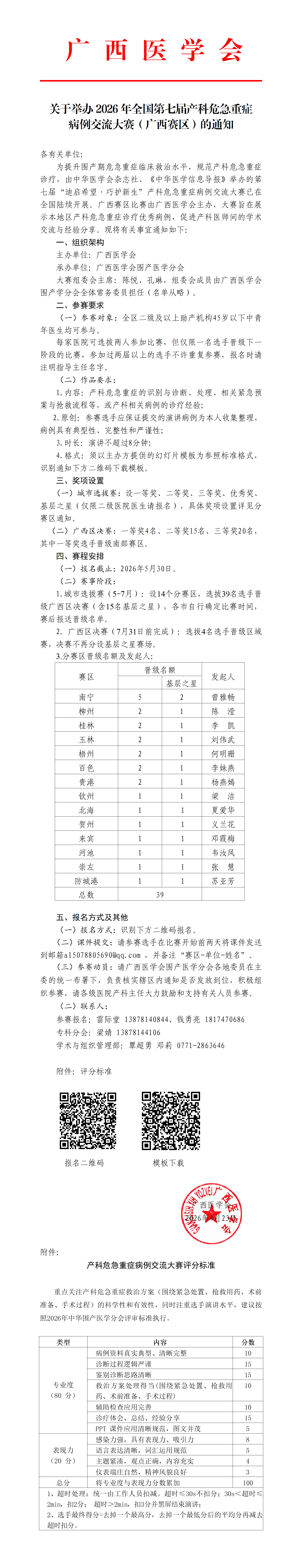 关于举办2026年全国第七届产科危急重症病例交流大赛(广西赛区)的通知