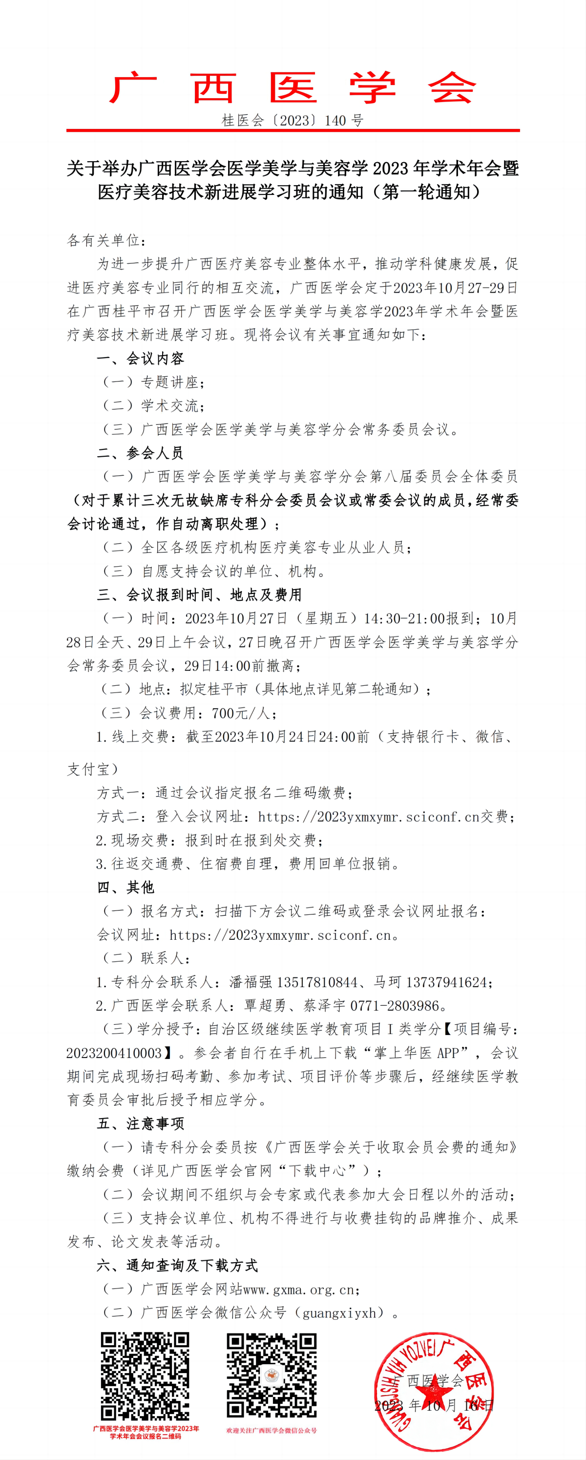 关于举办广西医学会医学美学与美容学2023年学术年会暨医疗美容技术新进展学习班的通知(第一轮通知)