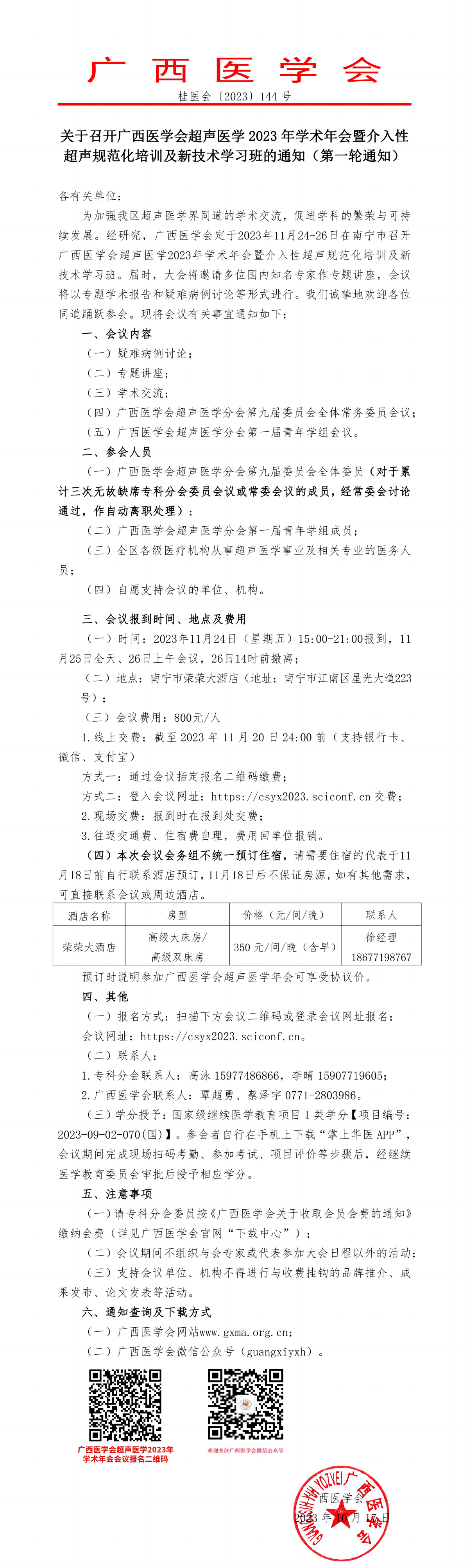 关于召开广西医学会超声医学2023年学术年会暨介入性超声规范化培训及新技术学习班的通知(第一轮通知)