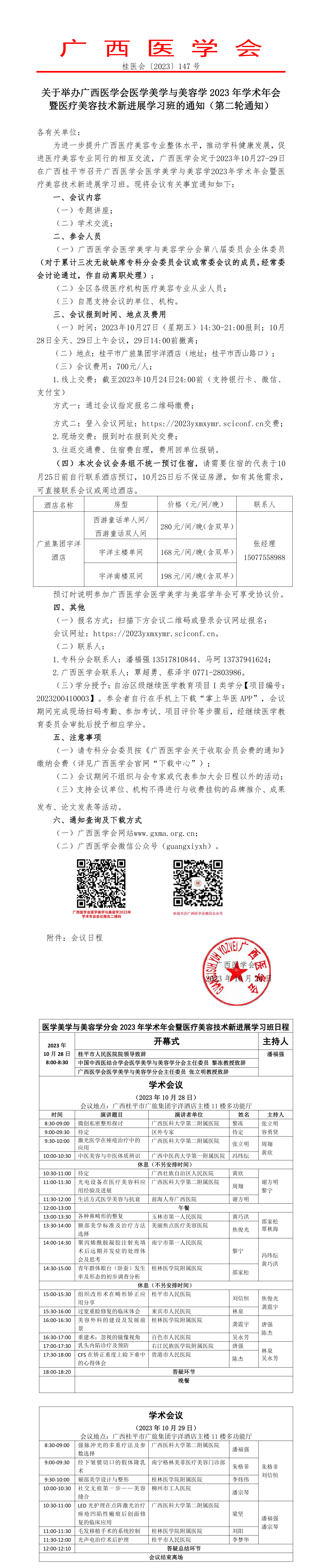 关于举办广西医学会医学美学与美容学2023年学术年会暨医疗美容技术新进展学习班的通知(第二轮通知)