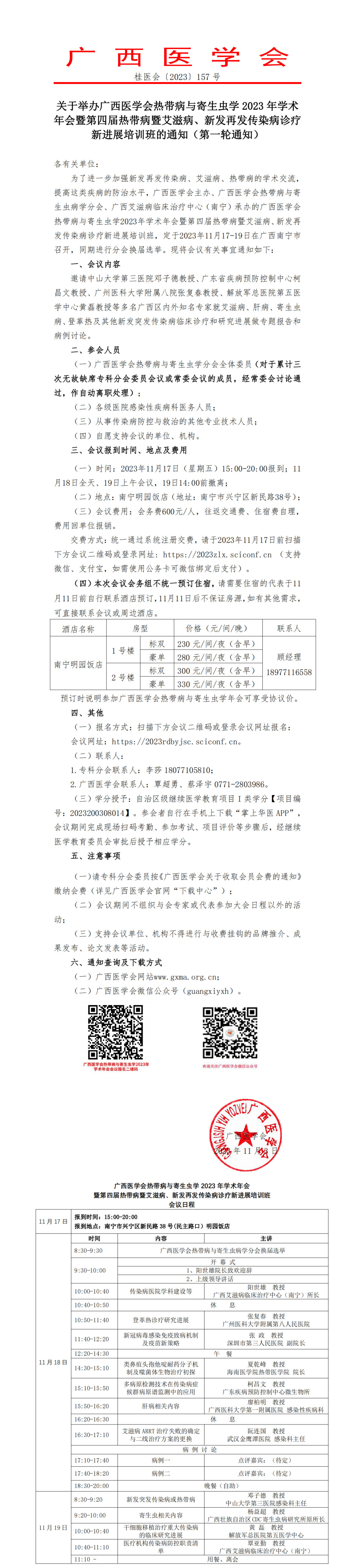 关于举办广西医学会热带病与寄生虫学2023年学术年会暨第四届热带病暨艾滋病、新发再发传染病诊疗新进展培训班的通知(第一轮通知)