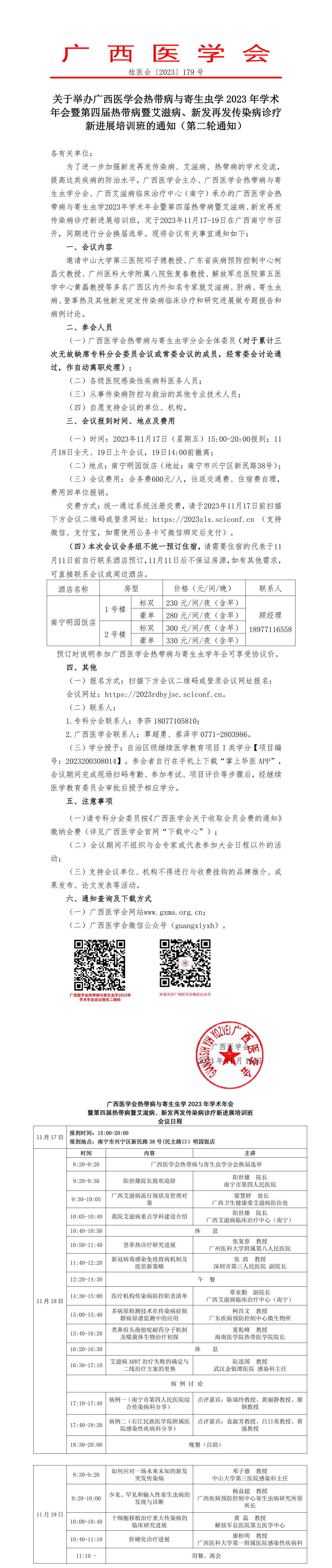关于举办广西医学会热带病与寄生虫学2023年学术年会暨第四届热带病暨艾滋病、新发再发传染病诊疗新进展培训班的通知(第二轮通知)