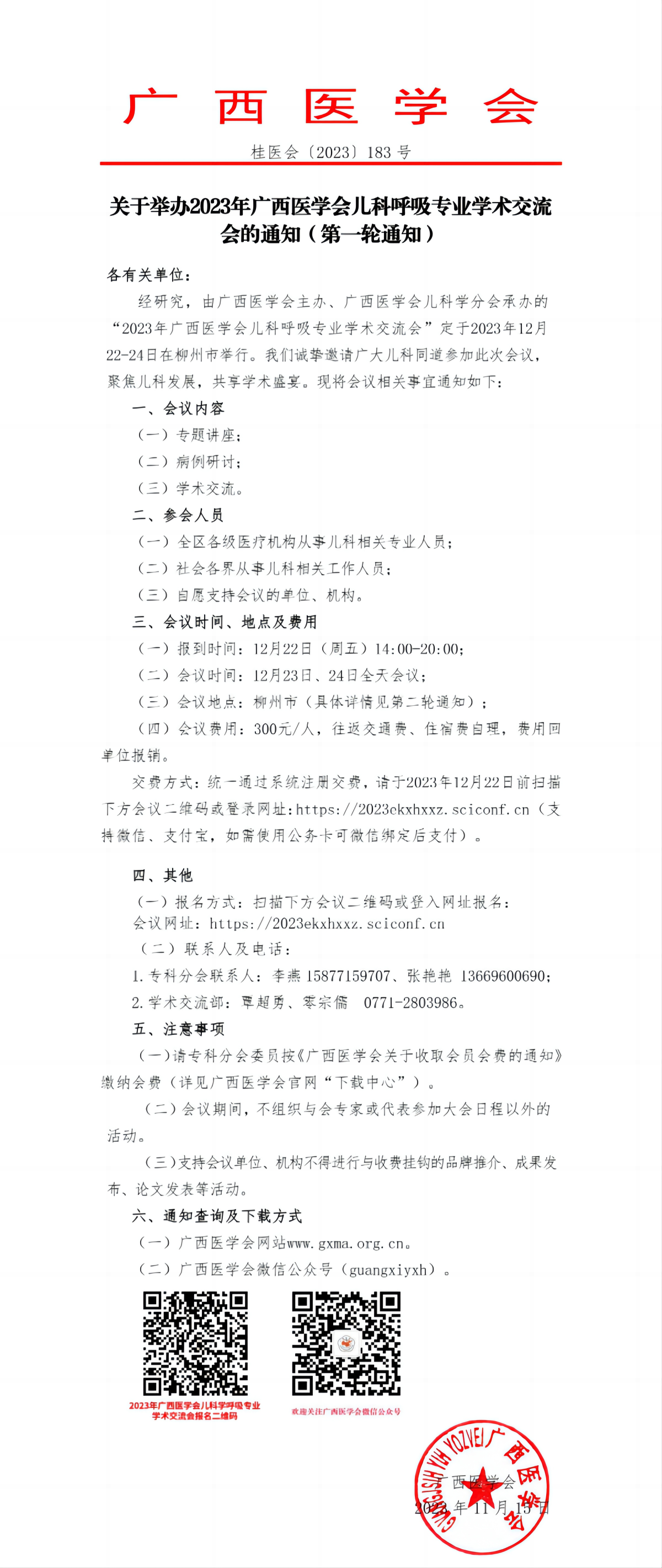 关于举办2023年广西医学会儿科呼吸专业学术交流会的通知(第一轮通知)