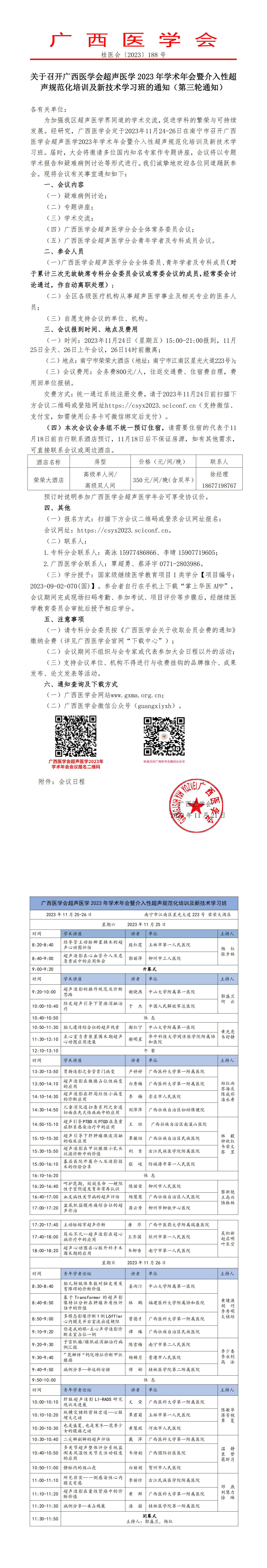 关于召开广西医学会超声医学2023年学术年会暨介入性超声规范化培训及新技术学习班的通知(第三轮通知)