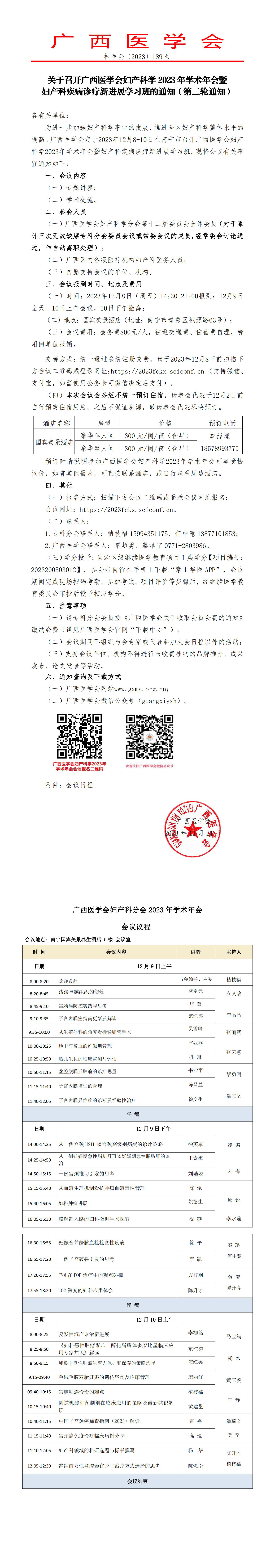 关于召开广西医学会妇产科学2023年学术年会暨妇产科疾病诊疗新进展学习班的通知(第二轮通知)