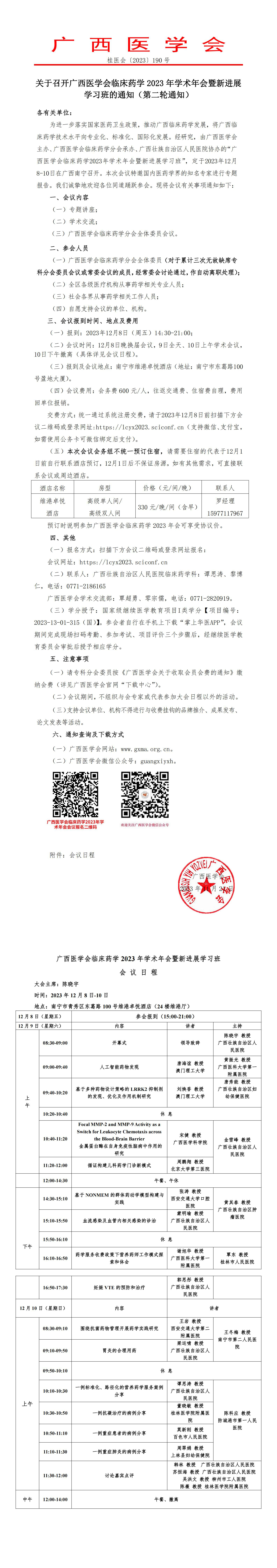关于召开广西医学会临床药学2023年学术年会暨新进展学习班的通知(第二轮通知)