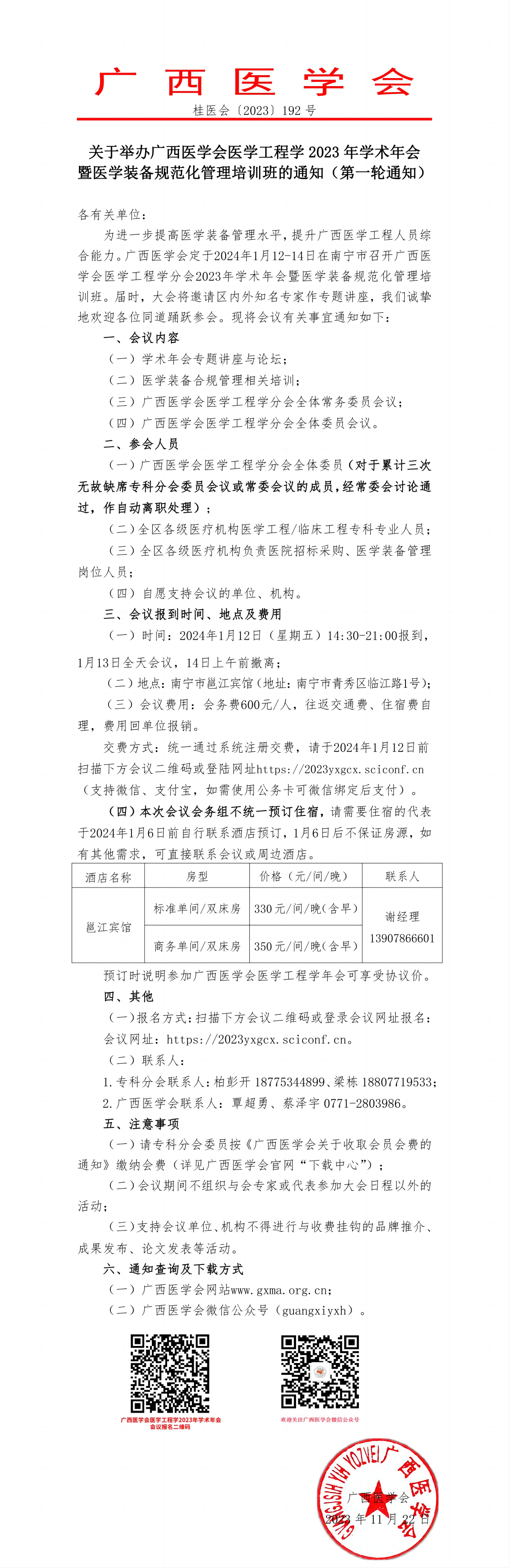 关于举办广西医学会医学工程学2023年学术年会暨医学装备规范化管理培训班的通知(第一轮通知)