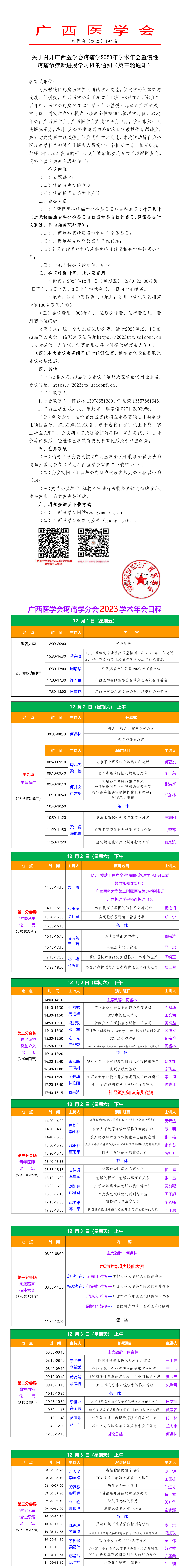 关于召开广西医学会疼痛学2023年学术年会暨慢性疼痛诊疗新进展学习班的通知(第三轮通知)