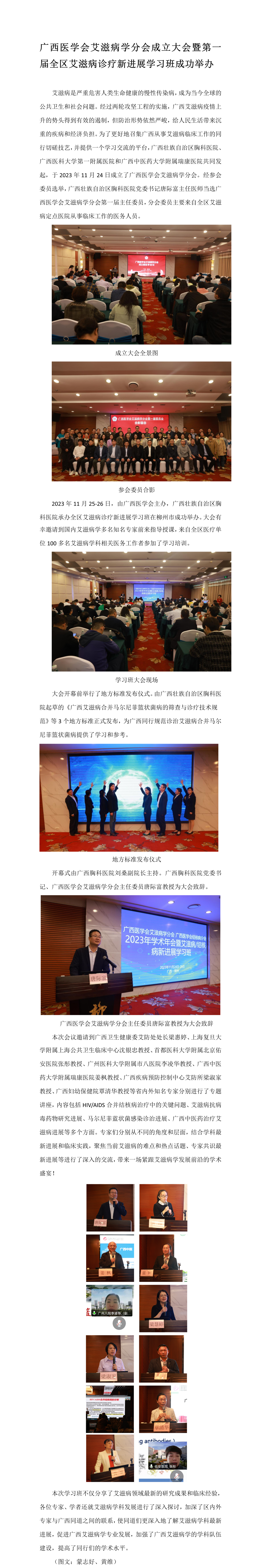 广西医学会艾滋病学分会成立大会暨第一届全区艾滋病诊疗新进展学习班成功举办