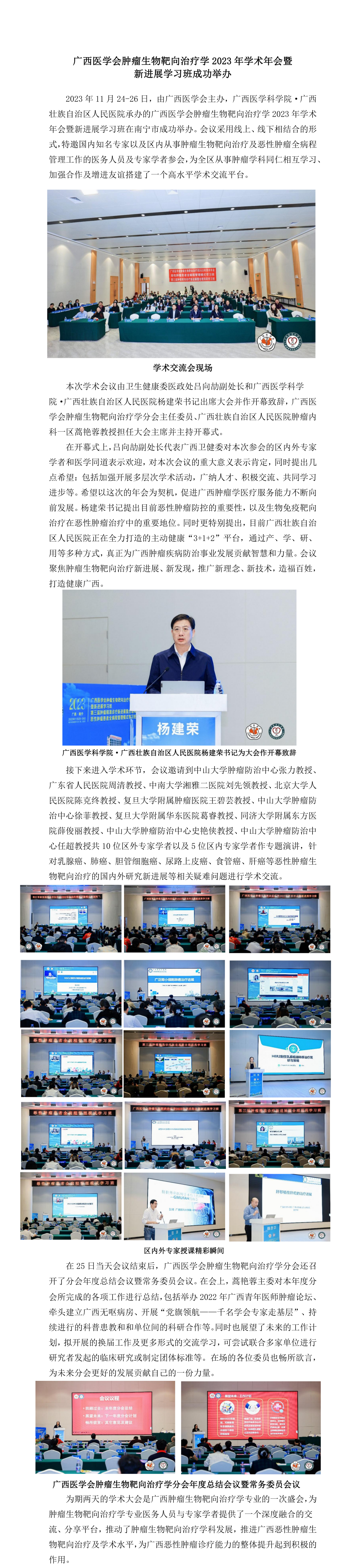 广西医学会肿瘤生物靶向治疗学2023年学术年会暨新进展学习班成功举办