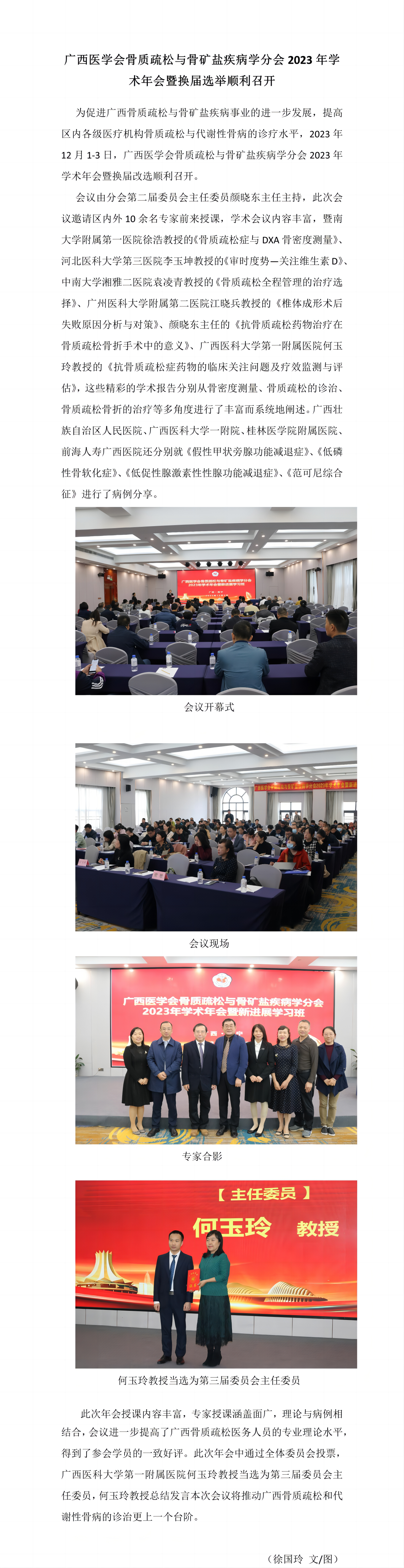 广西医学会骨质疏松与骨矿盐疾病学分会2023年学术年会暨换届选举顺利召开