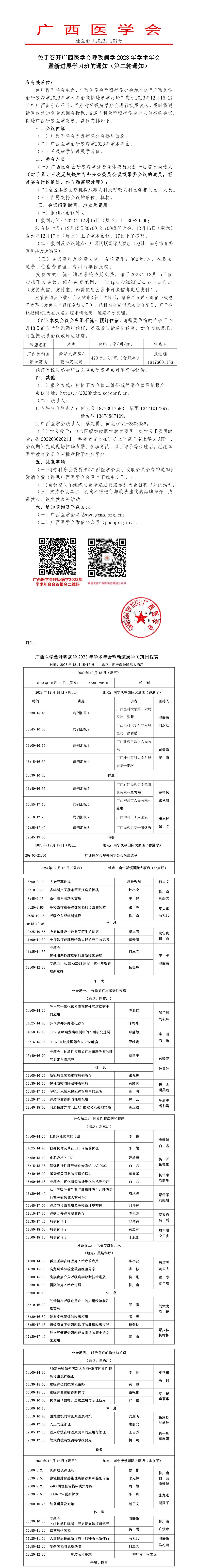 关于召开广西医学会呼吸病学2023年学术年会暨新进展学习班的通知(第二轮通知)