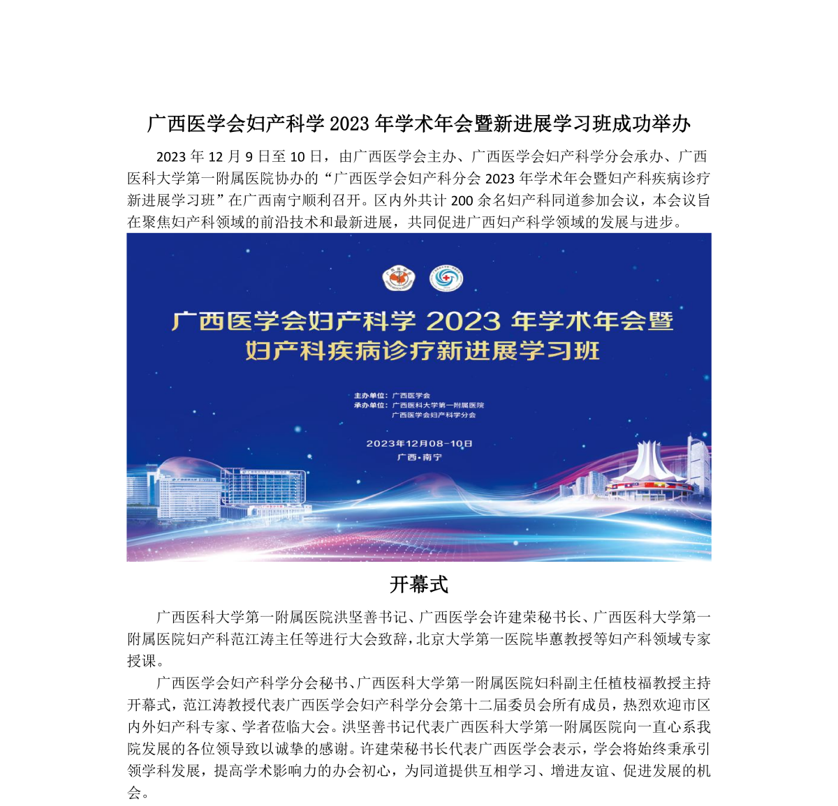 广西医学会妇产科学2023年学术年会暨新进展学习班成功举办