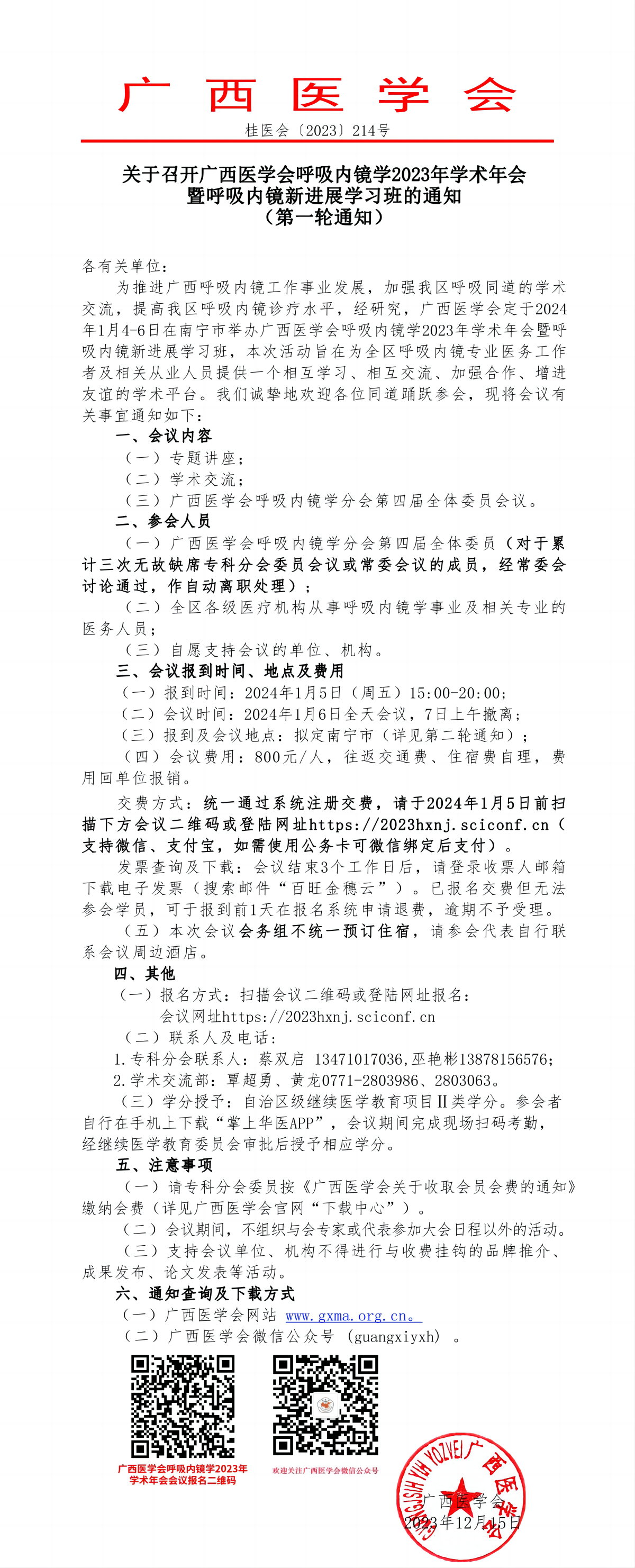 关于召开广西医学会呼吸内镜学2023年学术年会暨呼吸内镜新进展学习班的通知(第一轮通知)