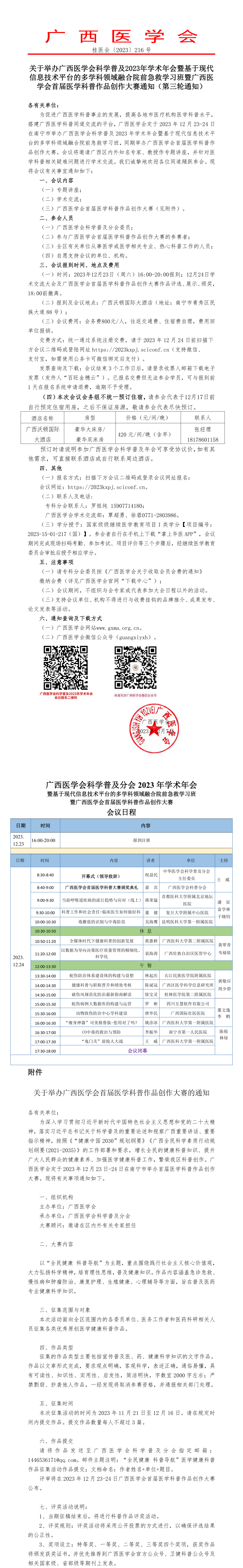 关于举办广西医学会科学普及2023年学术年会暨基于现代信息技术平台的多学科领域融合院前急救学习班暨广西医学会首届医学科普作品创作大赛通知(第三轮通知)