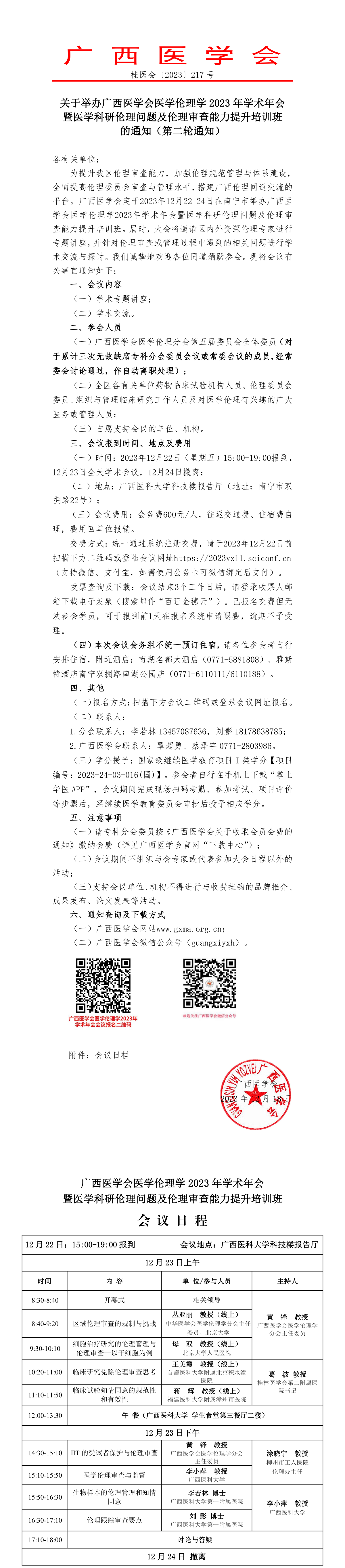 关于举办广西医学会医学伦理学2023年学术年会暨医学科研伦理问题及伦理审查能力提升培训班的通知(第二轮通知)