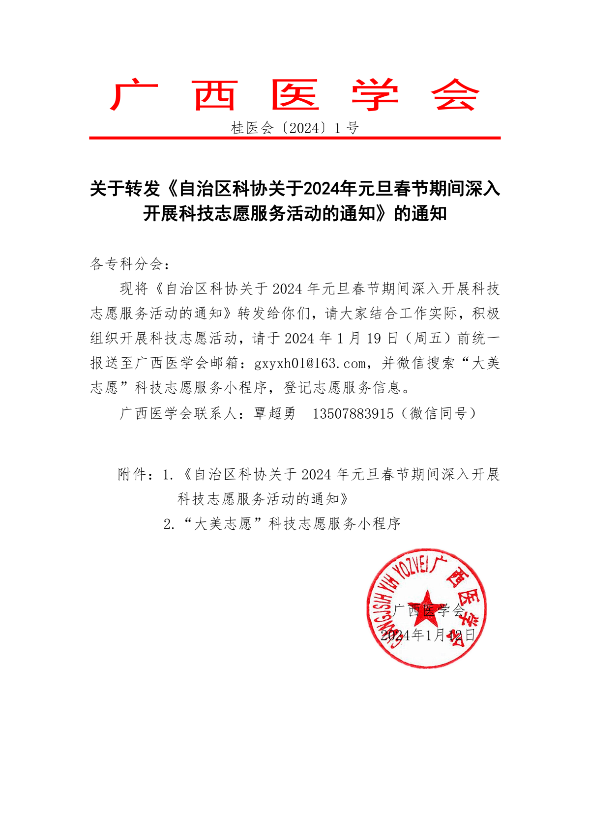 关于转发《自治区科协关于2024年元旦春节期间深入开展科技志愿服务活动的通知》的通知