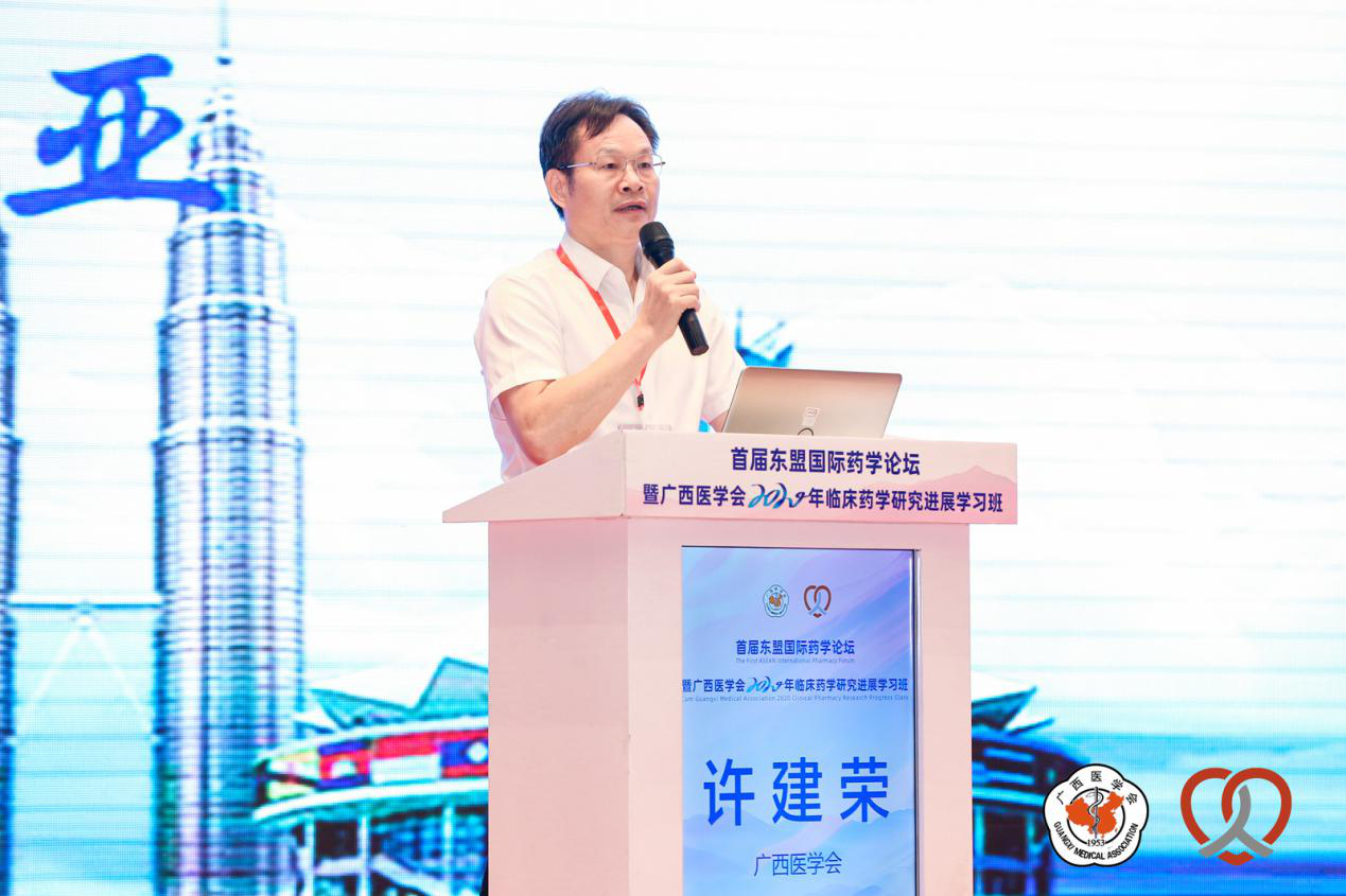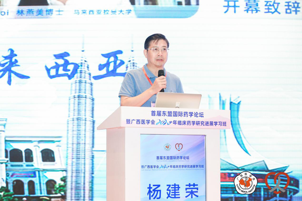 9月12-13日,由广西医学会主办、广西医学会临床药学分会承办、广西壮族自治区人民医院和广西外国语学院协办的首届东盟国际药学论坛暨广西医学会2020年临床药学研究进展学习班在南宁顺利开幕。自治区卫生健康委员会医政医管处副处长凌永平、广西医学会秘书长许建荣、广西壮族自治区人民医院党委书记杨建荣以及广西外国语学院董事长韦茜出席大会并作致辞,广西壮族自治区人民医院副院长伍秋霞主持了开幕式。
