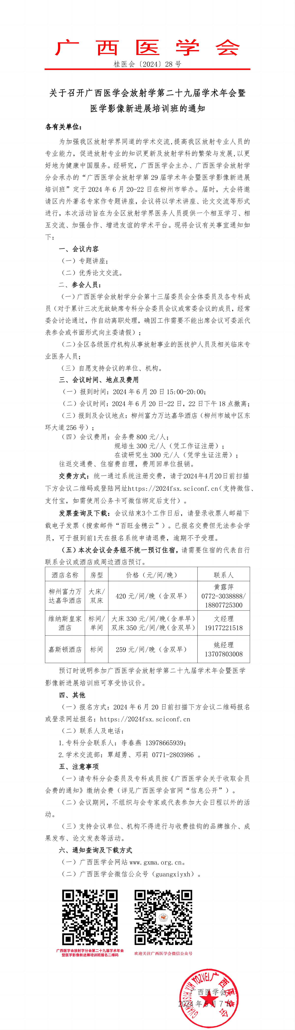 关于召开广西医学会放射学第二十九届学术年会暨 医学影像新进展培训班的通知