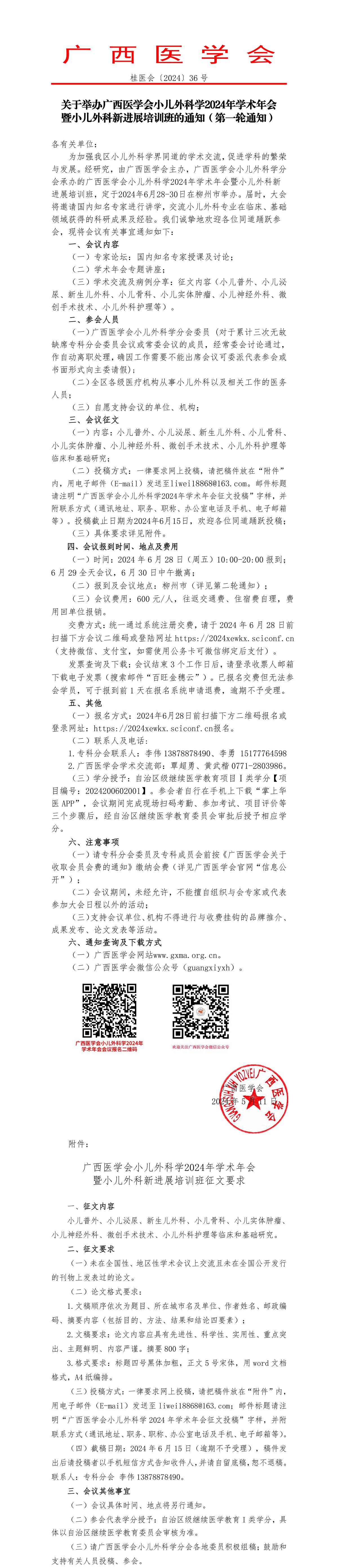 关于举办广西医学会小儿外科学2024年学术年会暨小儿外科新进展培训班的通知(第一轮通知)
