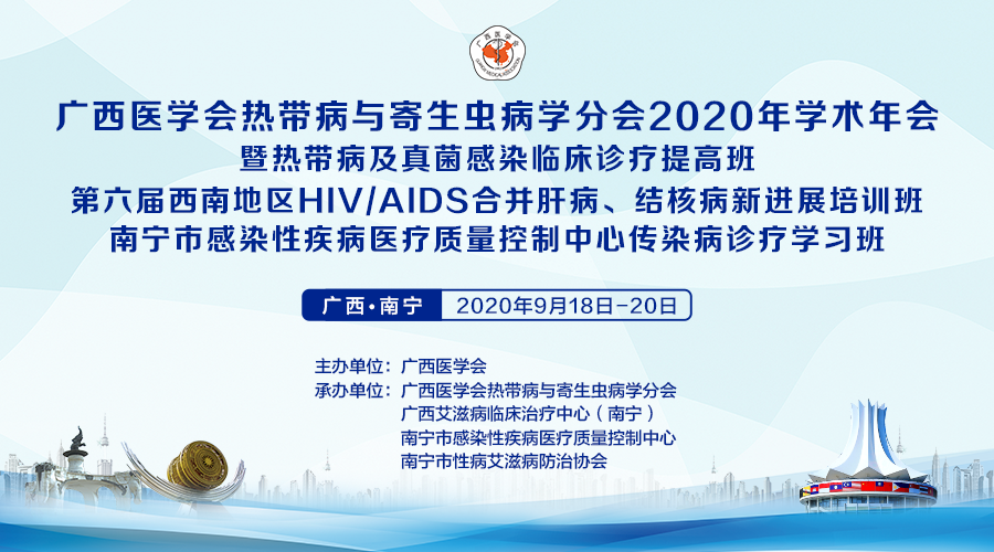 为了进一步加强交流及传递新冠肺炎等新发再发传染病、热带病及真菌感染、HIV/AIDS合并肝病、结核病的学科研究、临床诊疗新进展,提高这类疾病的防治水平,经研究,广西医学会定于2020年9月18日在南宁市举办2020年广西医学会热带病与寄生虫病学分会学术年会暨“热带病及真菌感染临床诊疗提高班”、“第六届西南地区HIV/AIDS合并肝病、结核病新进展培训班”、“南宁市感染性疾病医疗质量控制中心传染病诊疗学习班”。