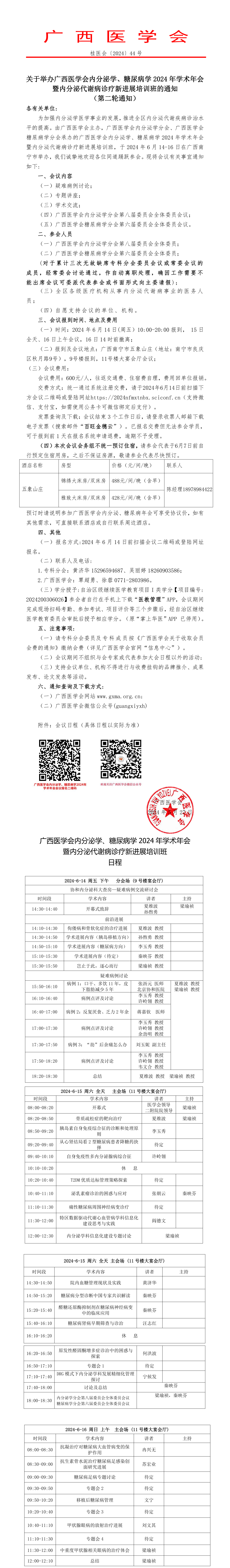 关于举办广西医学会内分泌学、糖尿病学2024年学术年会暨内分泌代谢病诊疗新进展培训班的通知(第二轮通知)
