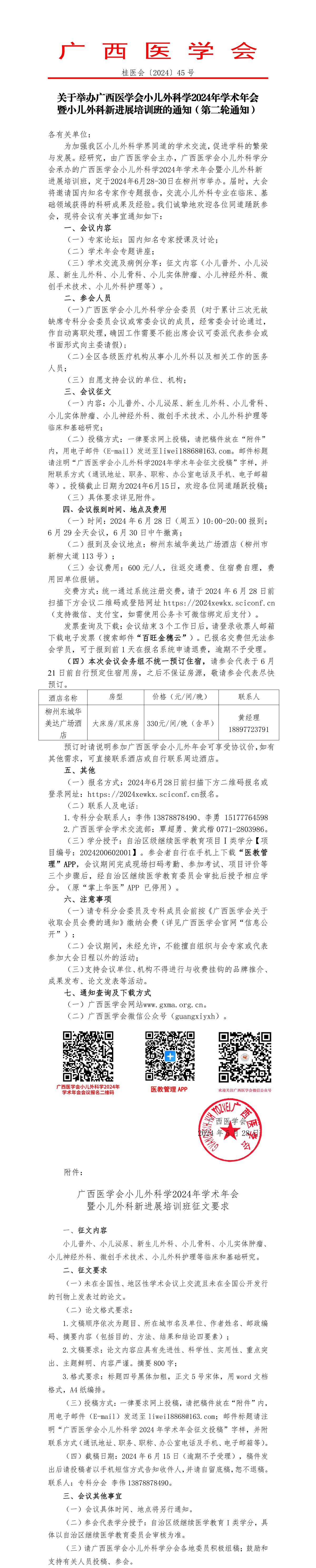 关于举办广西医学会小儿外科学2024年学术年会暨小儿外科新进展培训班的通知(第二轮通知)