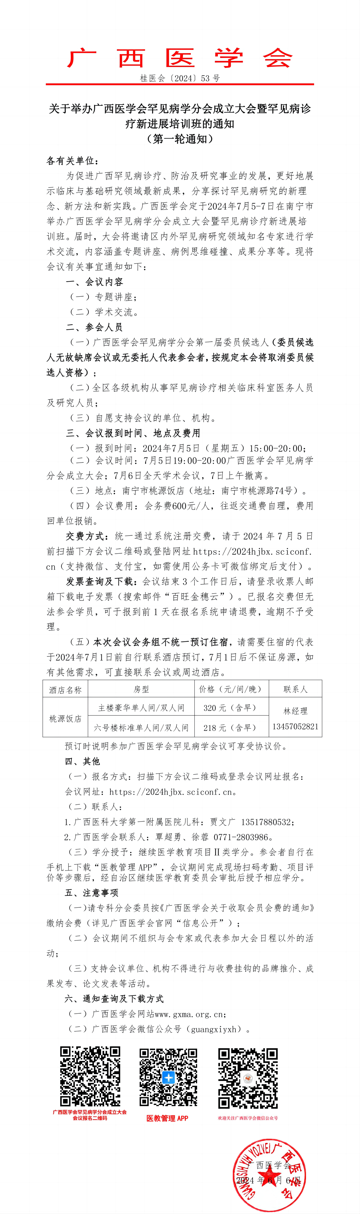 关于举办广西医学会罕见病学分会成立大会暨罕见病诊疗新进展培训班的通知(第一轮通知)